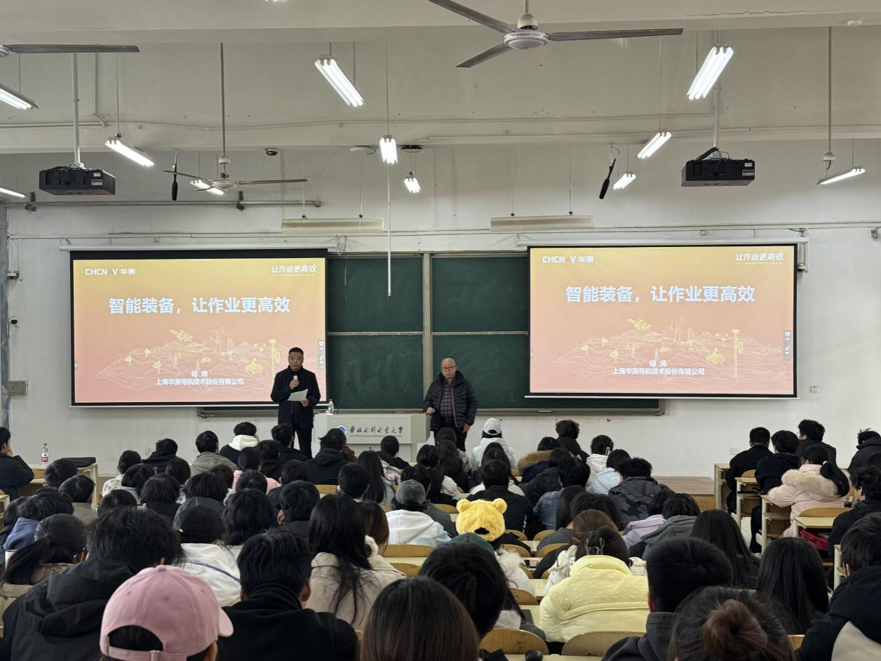 讲座中,胡炜以“智能装备,让作业更高效”为主题,结合自身深耕智能装备领域二十余年的行业经验,以《里斯本丸沉没》和《黑神话:悟空》为切入点,用通俗易懂的语言和丰富的行业案例,从技术演进、产业应用、职业发展三个维度,以精准导航、智能测绘装备为核心,系统讲解北斗导航技术、无人机测绘、三维激光扫描等关键技术的发展现状与应用场景,用具体数据和实际案例生动诠释智能装备重塑行业生态的发展趋势,充分展示了智能化测绘科技的强大功能。针对职业规划问题,胡炜结合企业人才需求标准,从专业能力提升、实践经验积累、职业心态培养三方面给出建议,鼓励同学们深耕专业知识,熟练掌握智能装备操作技能,同时注重跨学科知识融合,培养创新思维与解决实际问题的能力。