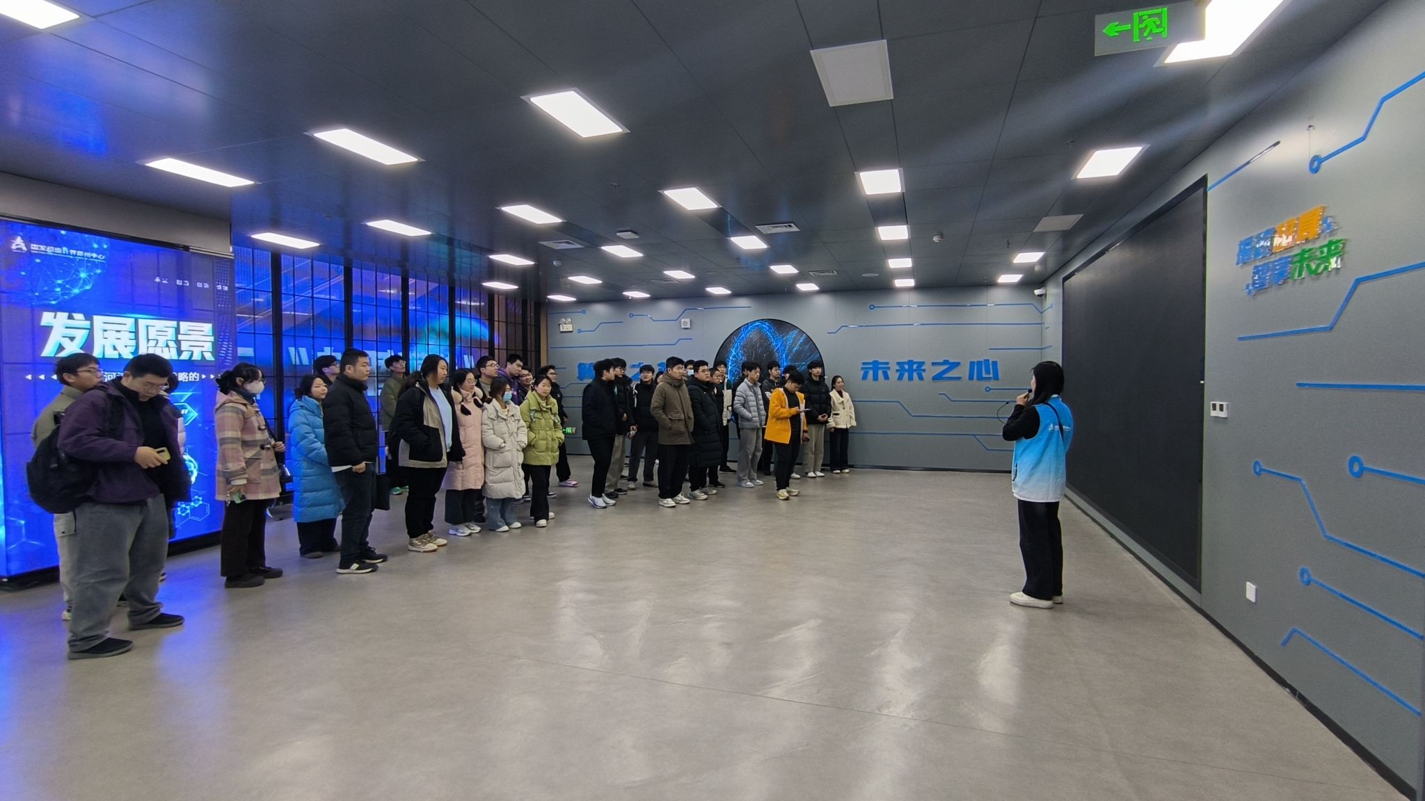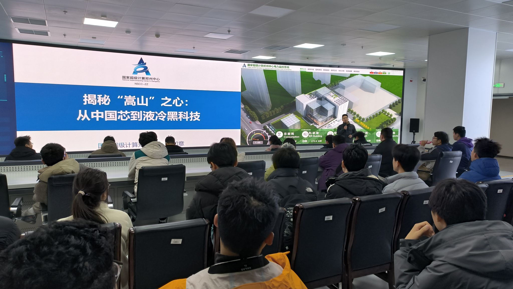 在超算中心,同学们深入了解了“嵩山”超级计算机的强大算力及其在气象、地质、智慧城市等领域的核心支撑作用。技术人员重点介绍了超算在遥感智能解译、实景三维建模、低空经济数字孪生等前沿应用,并以无人机空域管理为例,生动展示了超算如何为低空经济提供实时计算支持。同学们就多源数据融合、AI算法加速等议题与工程师进行了交流。