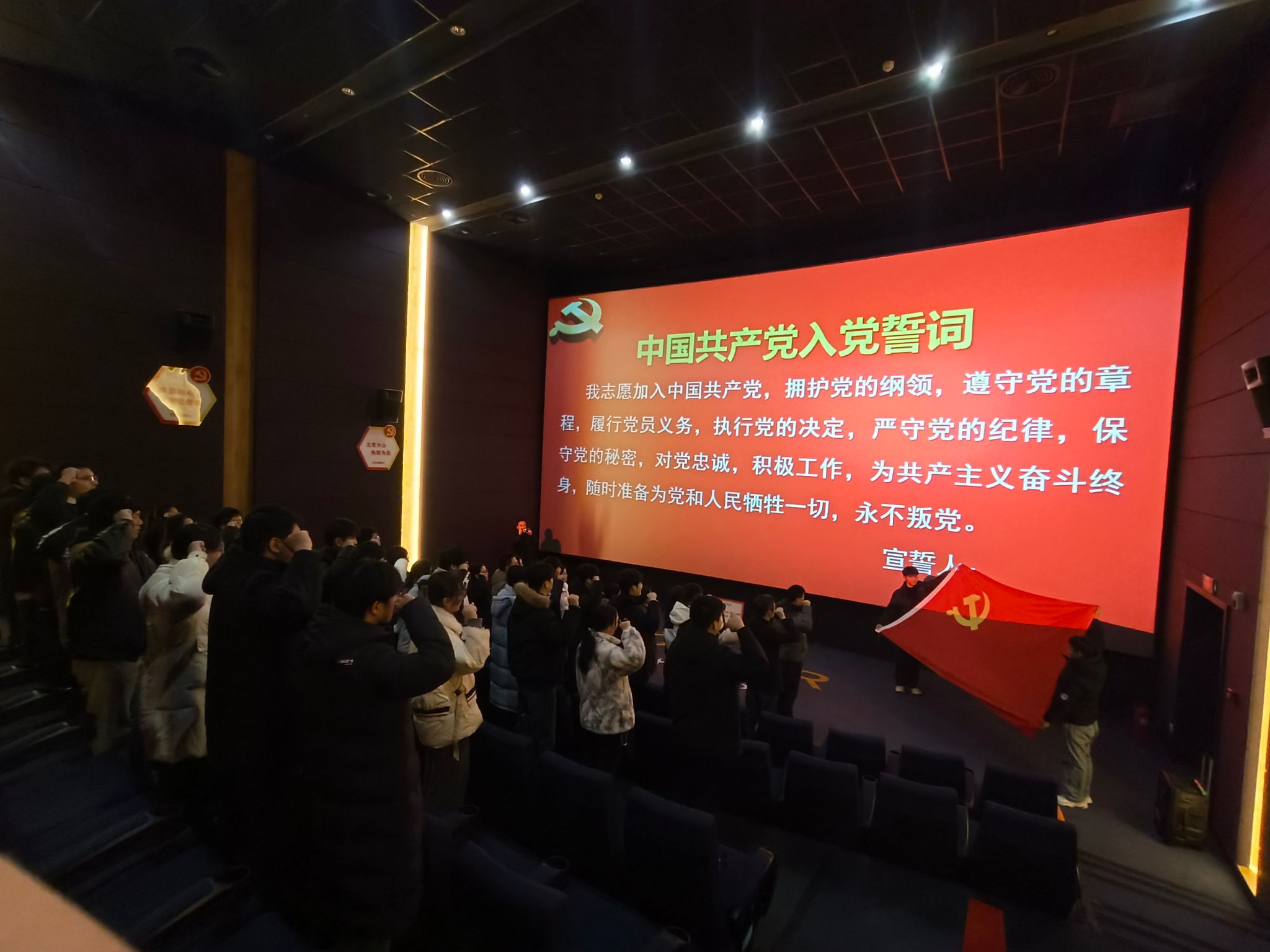 全体成员集中观看红色影片《志愿者3:浴血和平》,影片深刻展现了革命前辈为民族和平事业不畏牺牲、无私奉献的崇高精神,让大家直观感受到革命先辈们的理想信念与家国情怀,进一步加深了对红色历史的理解与感悟。观影结束后,2025年下半年新发展的党员面向鲜红的党旗,庄严宣誓加入中国共产党,在铿锵誓言中铭记初心使命。