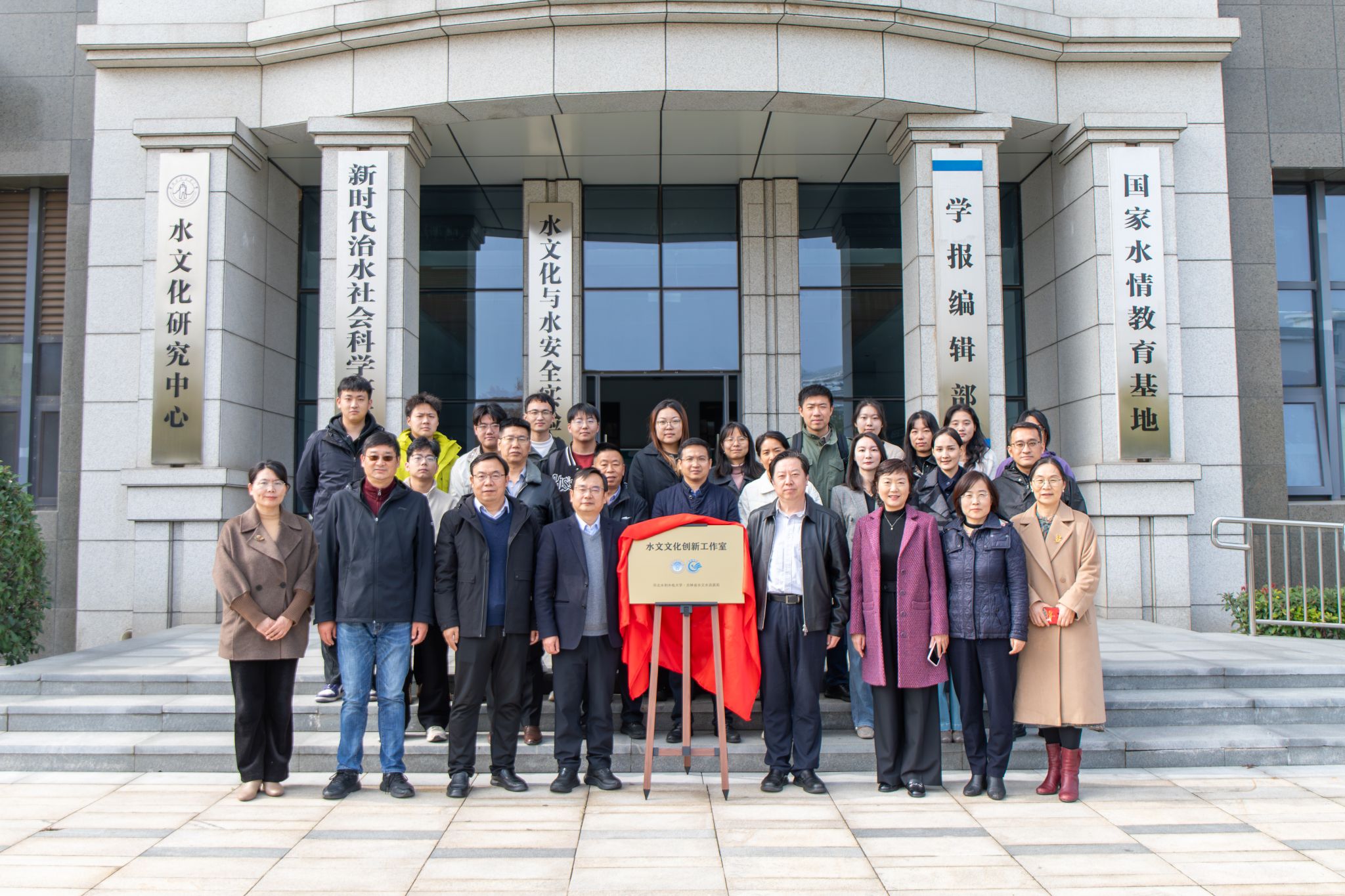 10月27日上午,我校“水文文化创新工作室”揭牌仪式在图书馆东侧大楼前举行。副校长赵军出席仪式并揭牌致辞,人事处、社会科学部(新时代治水社会科学研究院、水文化研究中心)、人居科学与设计学院相关负责同志,水文化创新工作室专家老师、研究生等30多人参加仪式。