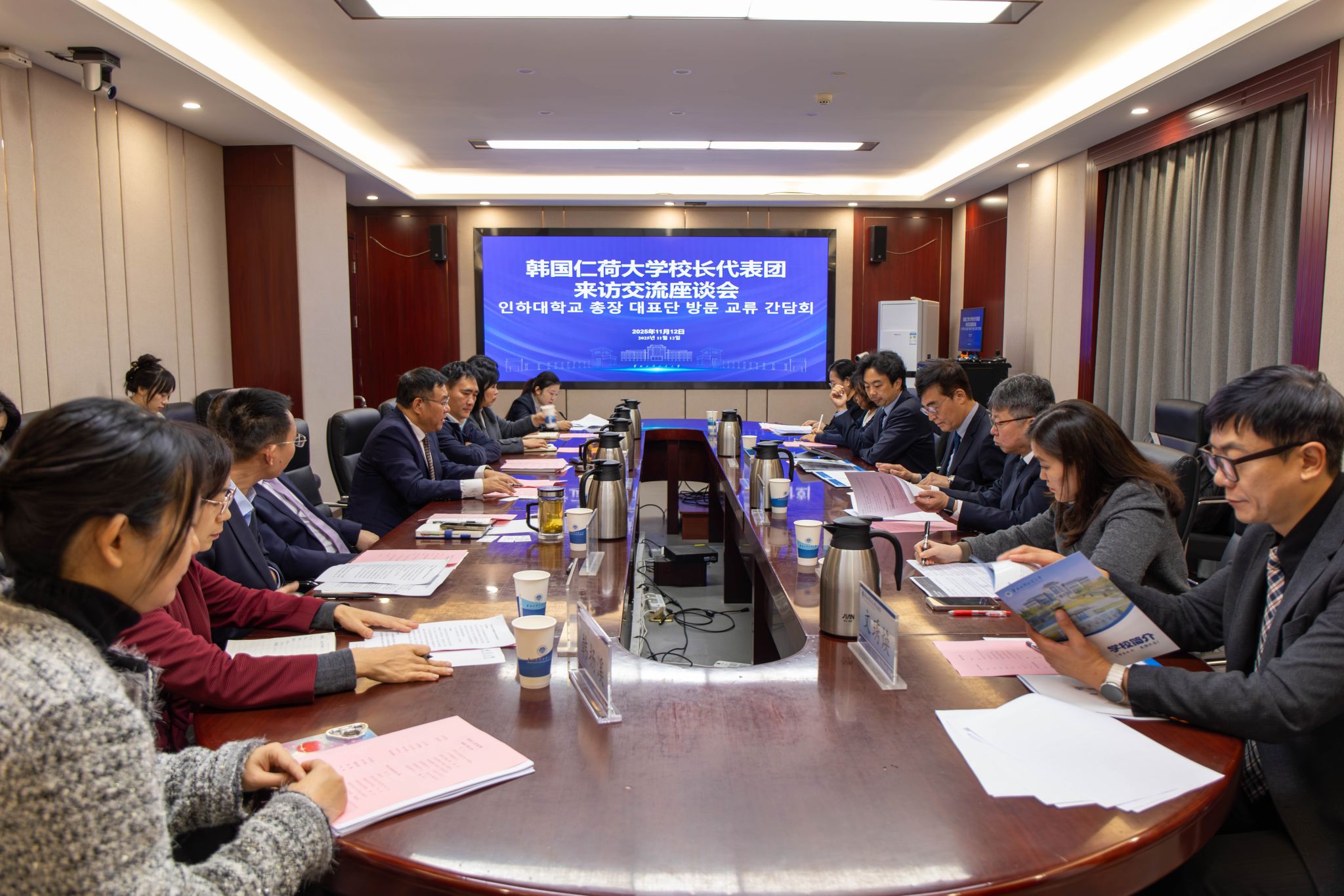 2025年11月12日上午,韩国仁荷大学校长赵明寓一行来校座谈交流。座谈会在龙子湖校区综合实验楼第五会议室举行。校长刘俊国出席会议并致辞,副校长李彦彬主持会议,国际交流与合作处、管理与经济学院负责人及相关负责老师参加座谈。