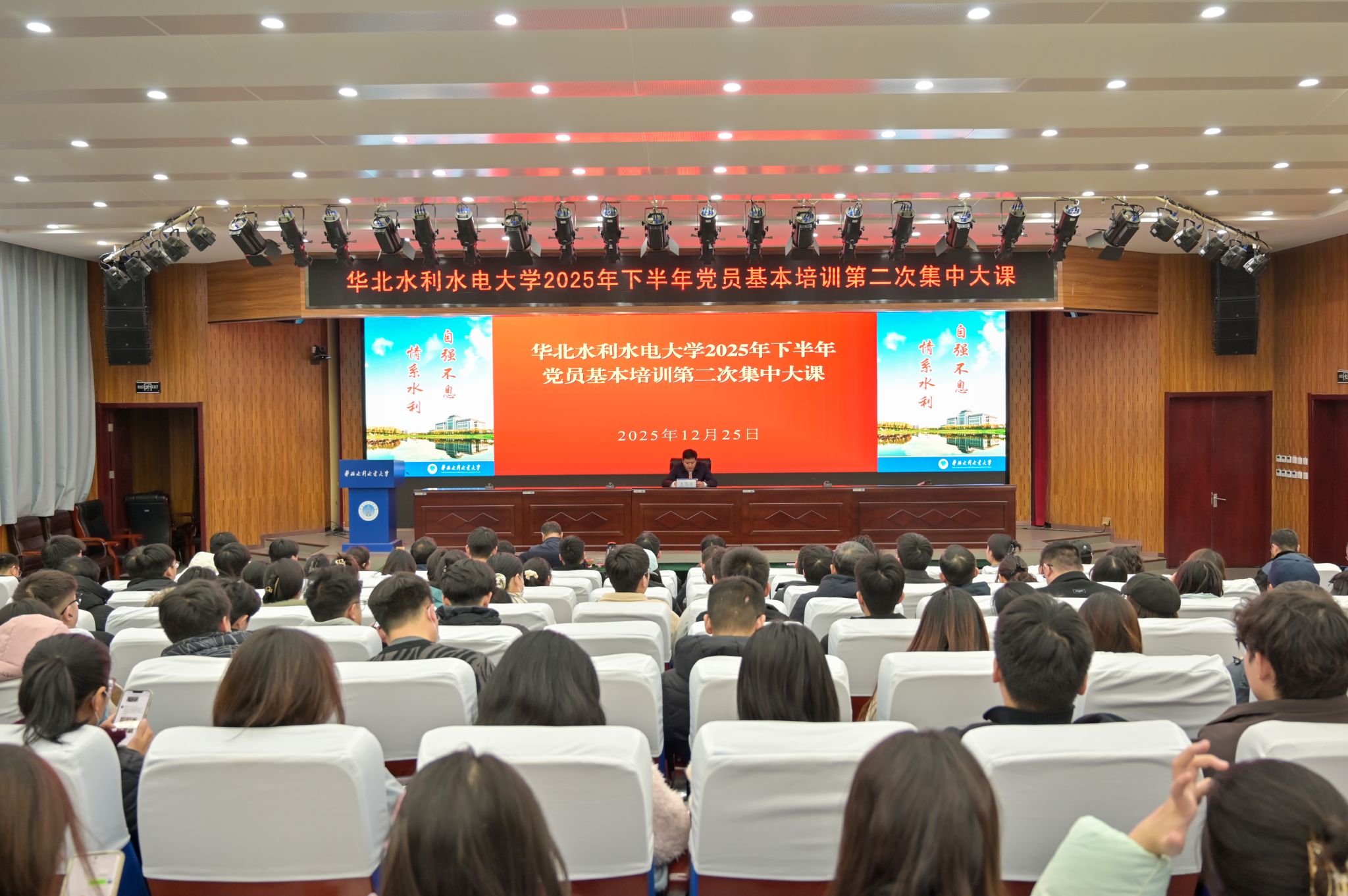 12月25日下午,学校举办2025年下半年党员基本培训第二次集中大课,全校5000余名师生党员分别在主会场及53个分会场共同观看学习南方科技大学校长、中国科学院院士薛其坤的专题报告。校党委书记王笃波主持并讲话,其他校领导分别在各分会场与师生党员一起参加培训。