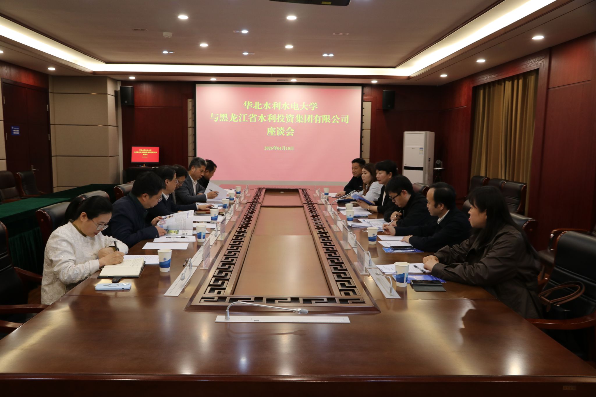 座谈会上,双方共同观看了学校校情宣传片和黑龙江水投集团宣传片,并围绕产教融合协同育人、寒区水利技术攻关、校企资源共建共享等议题进行了深入交流。