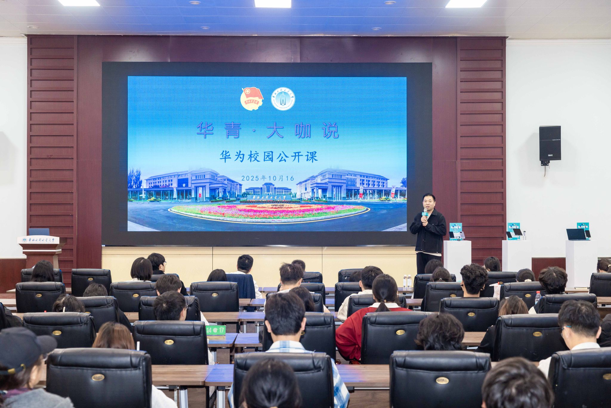 近日,由校团委主办的“华青大咖说”系列活动之“华为校园公开课”在我校龙子湖校区第七会议室成功举办。本次活动特邀华为河南终端业务部郑州区域总经理刘志强作为主讲嘉宾,以“探索前沿科技,助力未来规划”为主题,为我校师生带来了一场精彩纷呈的科技与职业发展盛宴。