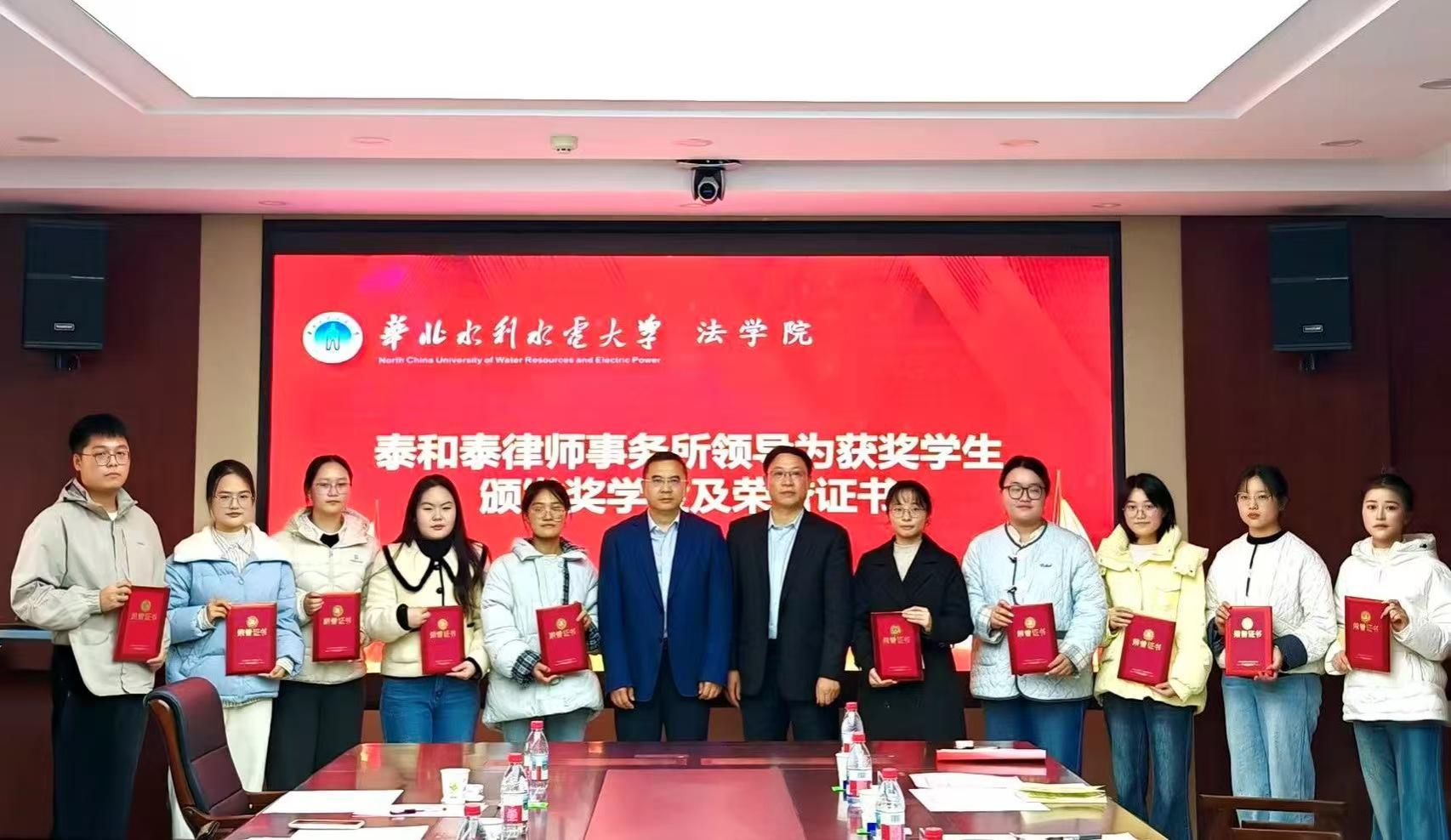 2025年11月20日,法学院举行“泰和泰”励志奖学金颁奖典礼。泰和泰(郑州)律师事务所执行主任岳鹏程一行出席典礼,法学院党委书记潘松岭、副院长袁宏山等人参加典礼。典礼由法学院院长刘华涛主持。