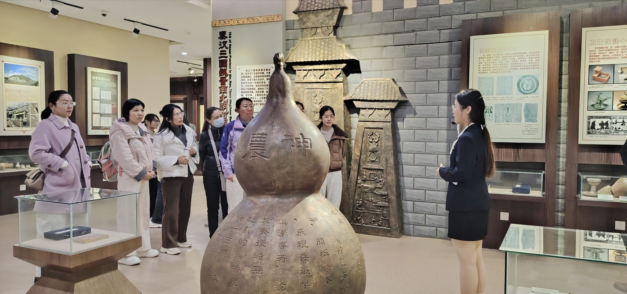 在河南中医药大学中药博物馆,琳琅满目的中药材标本、历代中医药典籍,勾勒出中医药文化数千年的传承脉络。从《本草纲目》的智慧结晶到现代中药研发的创新成果,讲解员详细介绍了中医药在养生保健、疾病防治中的独特价值。教职工们认真聆听、不时交流,在认识中药材特性的同时,深切感受着中医药文化的博大精深与传承力量。
