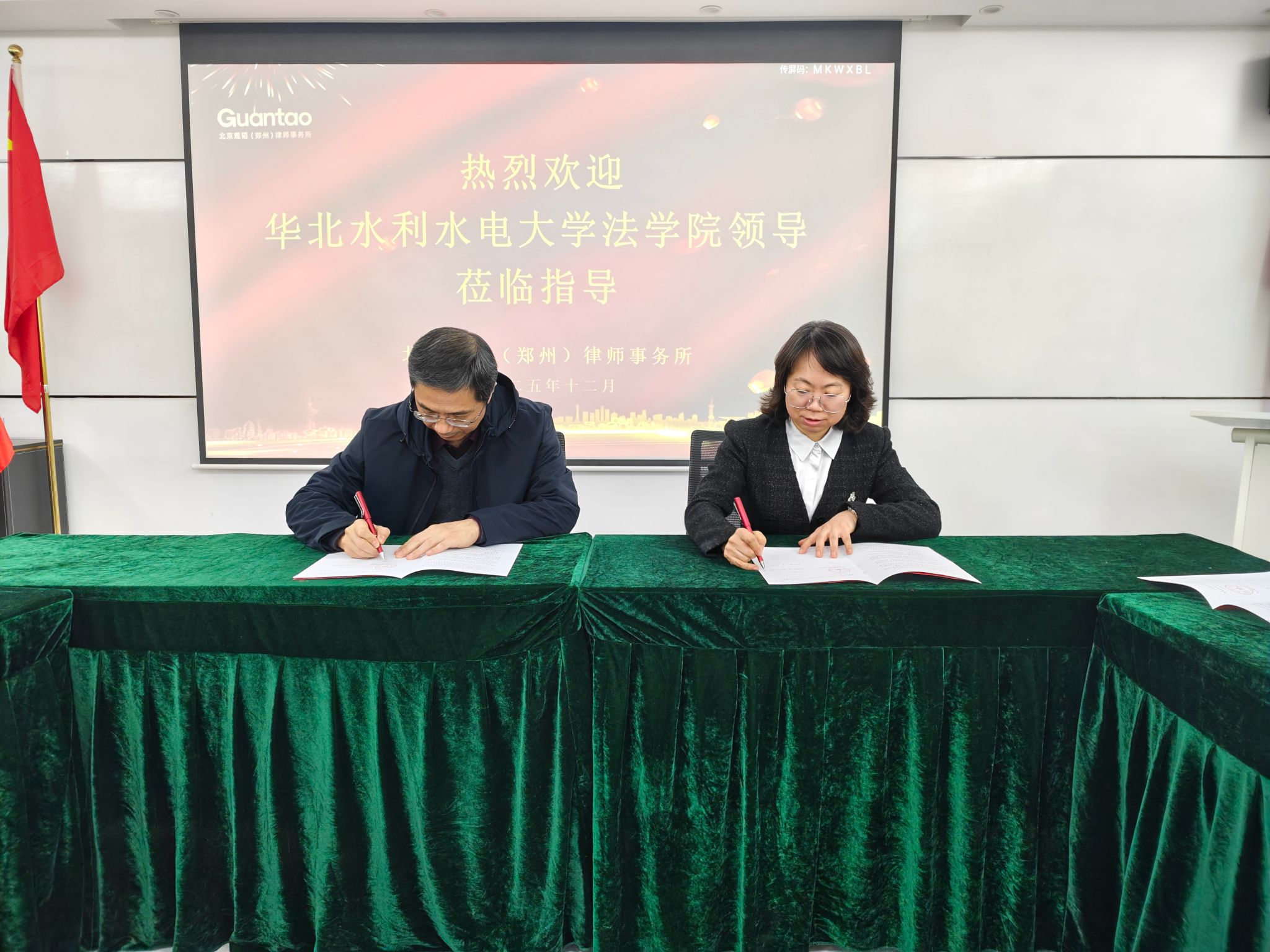 座谈结束后,双方代表签署共建协议,为协同育人、实习就业等合作筑牢制度基础。随后,双方共同为“华北水利水电大学法学教育实践基地和法治宣传教育基地”揭牌,并举行了实务导师聘任仪式。