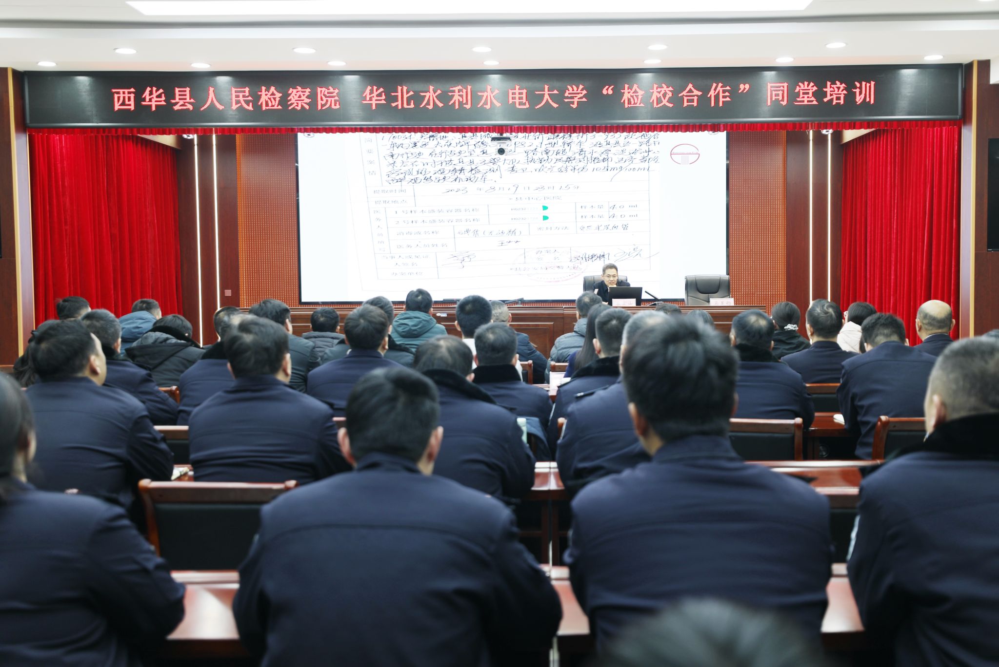 为深入推进校检合作常态化、实效化,加强法学理论与司法实务的深度融合。2025年12月24日,法学院党委书记潘松岭、院长刘华涛、副院长袁宏山、法律事务中心副主任张兵建等一行前往西华县人民检察院进行交流。副院长袁宏山受邀参加西华县人民检察院举办的公检法司同堂培训会并进行专题授课,西华县委政法委、公安局、法院、司法局相关业务骨干及检察院全体干警参加培训。会议由西华县检察院党组书记、检察长马灵钧主持。