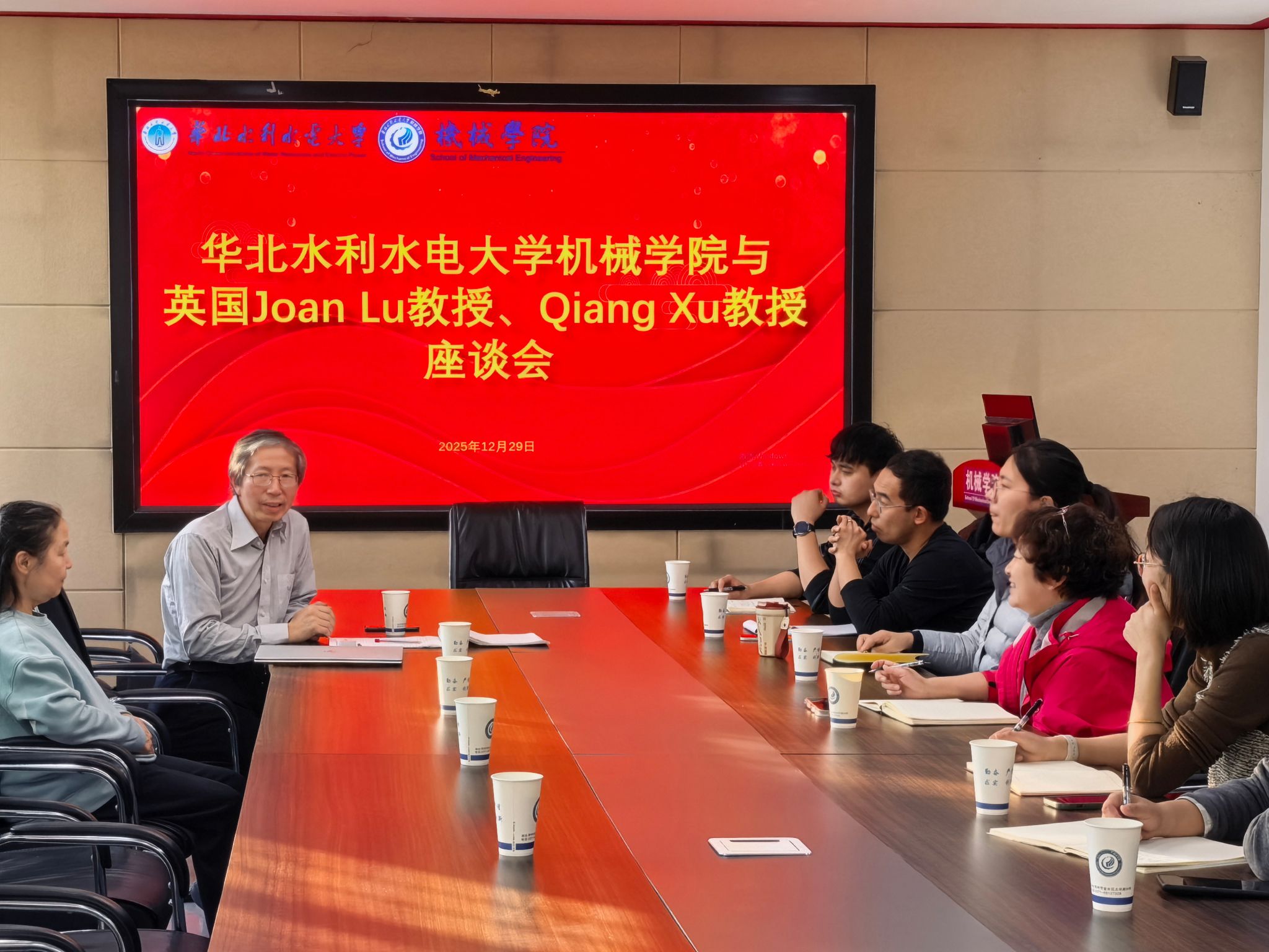 2025年12月29日下午,英国威尔士大学卢钟玉教授与哈德斯菲尔德大学徐强教授应邀来我校机械学院进行学术交流。本次交流活动由机械学院主办,旨在促进国际学术对话,拓宽师生科研视野。学术交流会由机械学院院长王丽君教授主持,学院部分青年教师及研究生参加了此次会议。