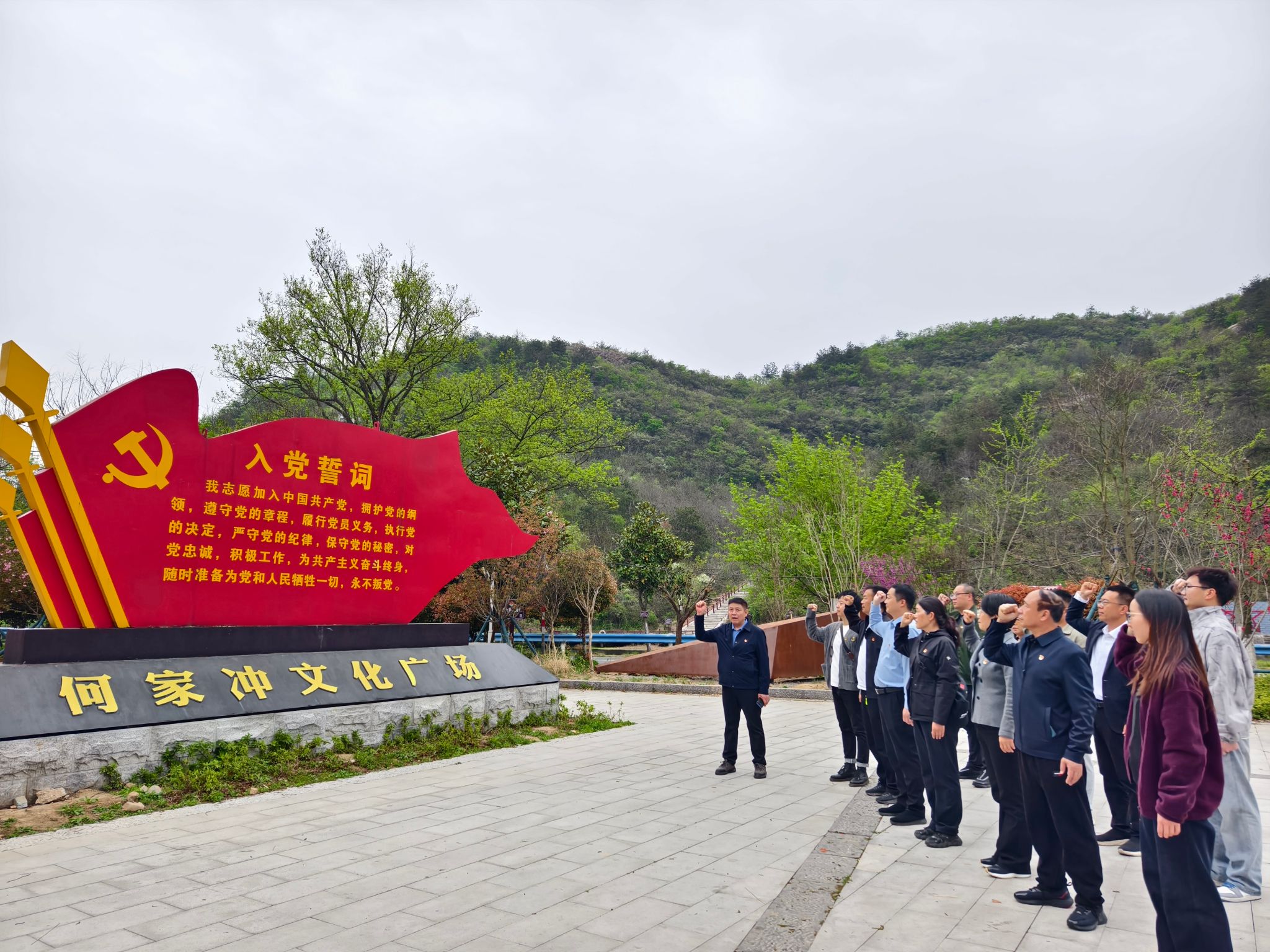 在何家冲文化广场,全体党员面对党旗重温入党誓词。铿锵有力的誓言在广场上空回荡,表达了大家不忘初心、牢记使命、矢志不渝跟党走的坚定信念。学生代表纷纷表示要铭记历史、赓续红色血脉,努力成长为担当民族复兴大任的时代新人。