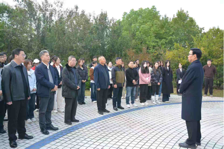 为深切缅怀孟瑞鹏烈士,传承弘扬瑞鹏精神,10月21日上午,由华北水利水电大学关工委主办、外国语学院承办的2025级新生学习缅怀孟瑞鹏学长活动在龙子湖校区孟瑞鹏纪念广场顺利举行。校关工委主任石品、副主任张玉祥、荣四海,水利学院党委书记郭玉宾、国际教育学院(乌拉尔学院)党委书记鲁智礼、外国语学院党委书记孟治刚、学生工作处副处长胡德朝,以及2025级新生代表和往届学生代表共50余人参加了活动。
