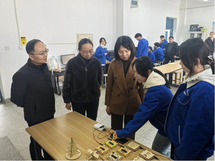 调研期间,焦爱萍先后走访花园校区南院和北院工训场所,实地察看了3D打印、激光加工、电子工艺、数车加工等工程训练项目的教学组织与学生实训情况。她走进课堂一线,与师生亲切交流,认真听取中心负责人的工作汇报,全面了解各实训项目中课程思政的融入路径、实施成效及评价方案、激励措施,并就进一步提升实践教学中的思政育人效果提出具体指导意见。