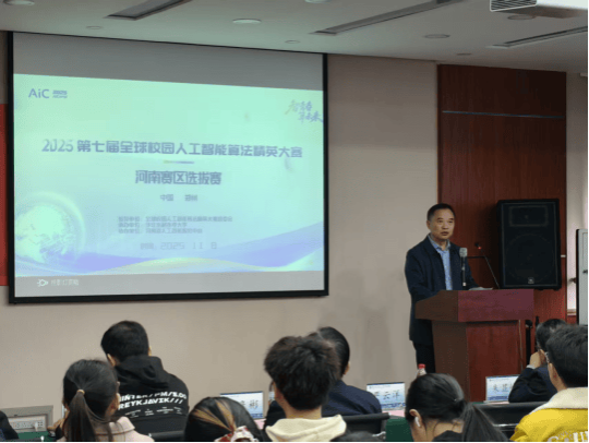 2025年11月8号上午,第七届全球校园人工智能算法精英大赛河南赛区选拔赛开幕式在华北水利水电大学龙子湖校区大学科技园207举行,共吸引30余所院校、600余支队伍参赛。华北水利水电大学副校长李彦彬,淮阴工学院副校长严云洋,河南大学教务处副处长朱显峰,河南大学创新创业实训中心主任王立,河南职业技术学院现代信息技术学院副教授张习民,华北水利水电大学工程实践与创新中心副主任段俊法等领导和嘉宾出席。华北水利水电大学工程实践与创新中心副主任范钦栋主持开幕式,本次大赛以“算法编织梦想,智能闪耀未来”为主题,搭建起人工智能领域青年学子交流竞技、施展才华的高端平台,助力河南人工智能人才培养与产业创新发展。