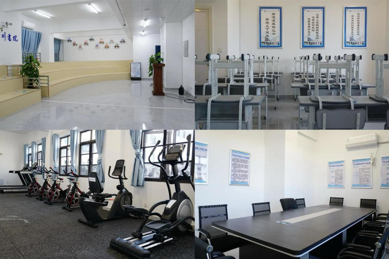 将育人理念转化为实际成效,离不开坚实的阵地支撑。智川书院上下坚定认为,优质的育人空间是“微课堂”活力迸发的基础,更是“一站式”社区承载育人功能的核心载体。为此,该院专门为“微课堂”打造了多功能报告厅——实现利用率最大化,120人的容纳量足以承载跨年级、跨专业的交流活动,专业投影与音响设备则保障了每一次知识分享都清晰传递、高效触达。不止于“微课堂”主场,该院更统筹规划出运动健心室、书香走廊、休闲庭院、学业研讨室及24小时自习室等多元空间,构建起集学习研讨、运动健心、休闲交流于一体的“温暖小家”,让育人场景从专题讲座延伸到学生生活的每ー个角落,为学生全方位成长提供立体保障。