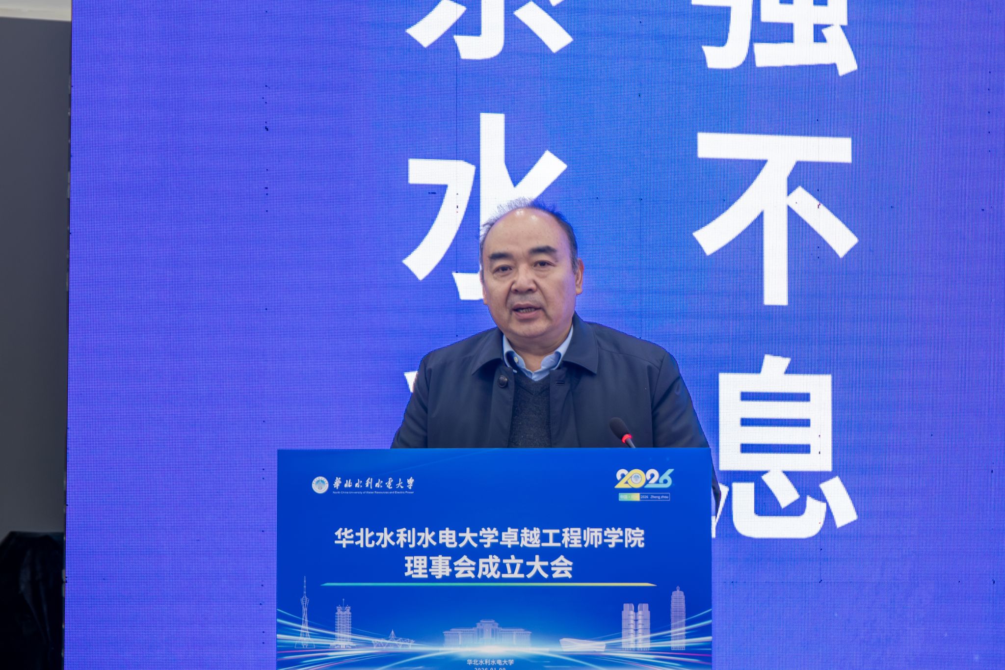 张伟代表水利部人事司对本次大会的召开表示热烈祝贺。他指出,华北水利水电大学作为水利特色鲜明、工科优势突出、办学质量优良的知名高等院校,长期以来为我国水利事业培养输送了大批卓越水利工程创新人才,作出了突出贡献。学校成立卓越工程师学院并创新性地构建理事会治理机制,是贯彻落实国家卓越工程师培养战略的务实之举,也是主动对接行业重大需求,深化产教融合,协同育人的创新实践,充分彰显了学校的时代担当与远见卓识。他强调,卓越工程师的培养,要筑牢育人根基,厚植水利情怀,引导学生在治水兴水的伟大实践中实现人生价值;要聚焦行业需求,聚力破解难题,实现专业与行业、课程标准与岗位标准、教学过程与生产过程有效对接;要锤炼综合素养,强化能力适配,引导学生既精通专业技术,又具备统筹协调、应对复杂局面的能力,适配新时代水利工程对复合型人才的多元需求;要强化平台赋能,深化协同育人,形成一批可复制可推广的卓越工程师培养“华水经验”和“水利模式”,为全国水利相关院校提供示范借鉴。