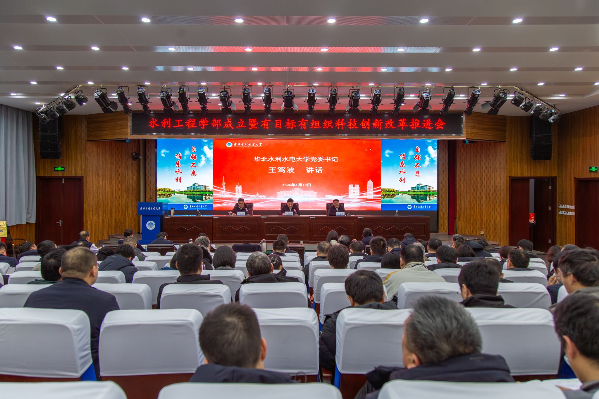 1月19日下午,华北水利水电大学召开“水利工程学部成立暨有目标有组织科技创新改革推进会”,并举行水利工程学部揭牌仪式。水利工程学部已于2025年9月1日设立。
