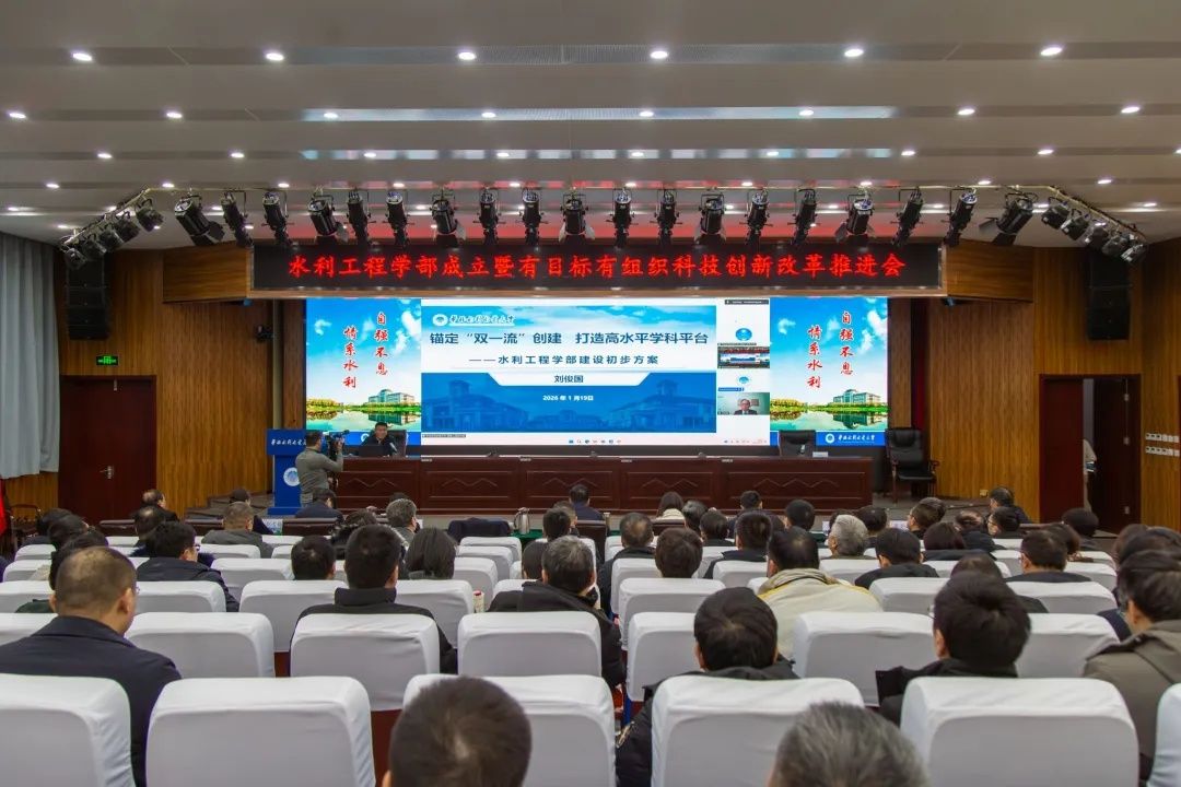 华北水利水电大学水利工程学部于2025年9月1日正式设立,经精心筹备,1月19日下午,该校召开“水利工程学部成立暨有目标有组织科技创新改革推进会”,并举行水利工程学部揭牌仪式。校党委书记王笃波出席会议并讲话,校长、水利工程学部部长刘俊国介绍学部建设方案,副校长、水利工程学部副部长李彦彬主持会议。校党委副书记焦爱萍,副校长马建琴、张志增、姜彤、宋刚福,水利工程学部学科平台负责人张金良、戴会超、刘雪梅参加会议。
