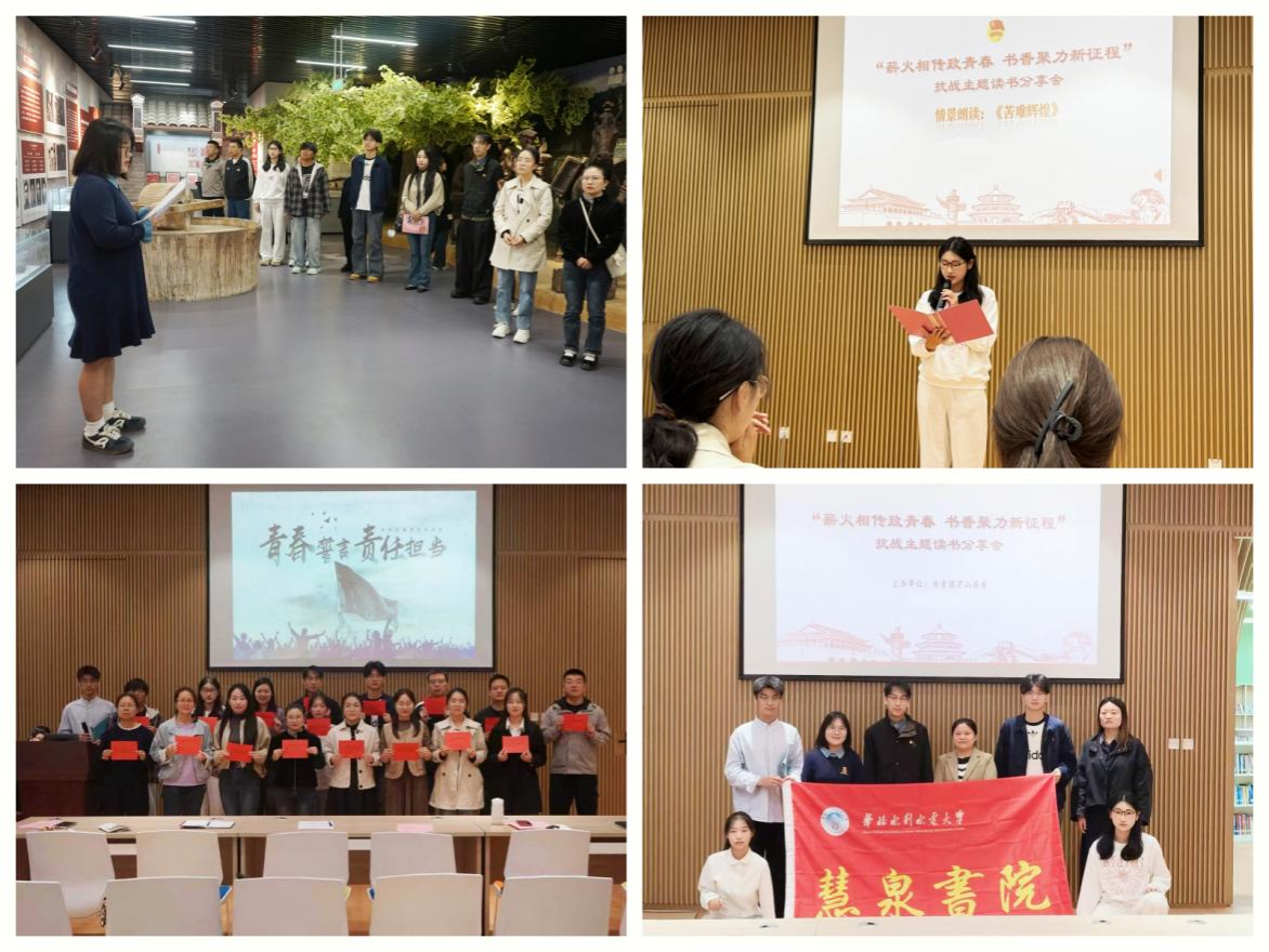 慧泉书院围绕爱国主义教育主线,联合共青团罗山县委开展了“薪火相传致青春 书香聚力新征程”抗战主题读书分享会。活动在县文化中心举行,来自全县各领域的青年代表共同参与。青年们参观了罗山红色文化展览,深情诵读了《苦难辉煌》《红岩》等经典作品片段,重温了大别山精神与长征精神的深刻内涵,感受革命先辈的崇高信念。