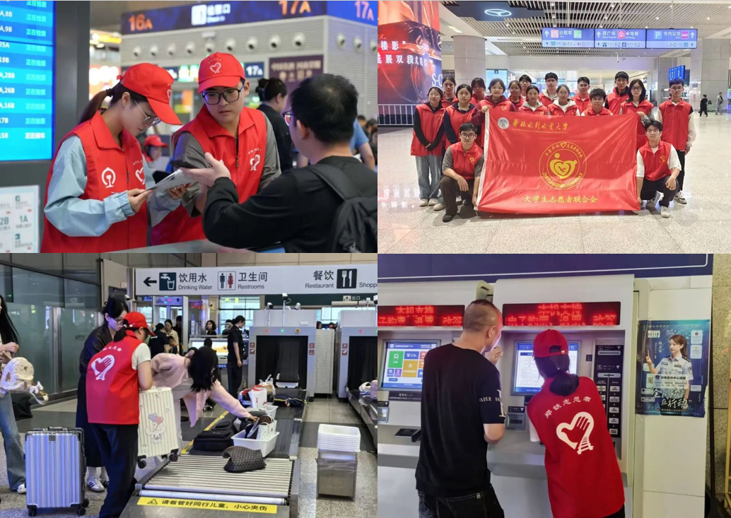 国庆和中秋双节期间,郑州东站迎来客流高峰,为保障旅客顺畅出行、助力车站顺利应对这一挑战,我校青年志愿者们身披志愿红马甲,在售票厅和自助购票设备旁耐心协助旅客使用电子设备购票、取票,解答他们在使用过程中遇到的疑问,主动协助旅客搬运行李、引导他们有序候车,帮助旅客节省了时间,有效提升了通行效率。