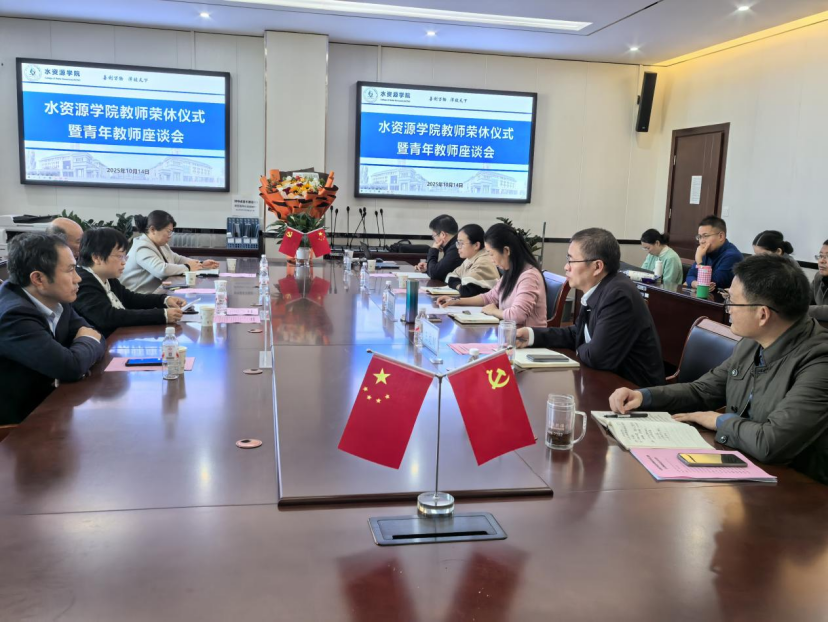 党委教师工作部、人事处、教务处、水资源学院等相关负责人分别向荣休教师致以敬意与感谢,并勉励青年教师以老教师为榜样,深耕教学、潜心育人。在座谈交流中,荣休教师分享了多年教学科研的宝贵经验,与青年教师围绕师德传承、教学科研协同发展等议题深入交流。老教师“择一事终一生”的坚守让青年教师深刻领悟教育使命,教学科研共生互促的理念和从“单点突破”到“系统生长”的成长图谱则为青年教师指明了实践路径、明晰了职业发展方向。