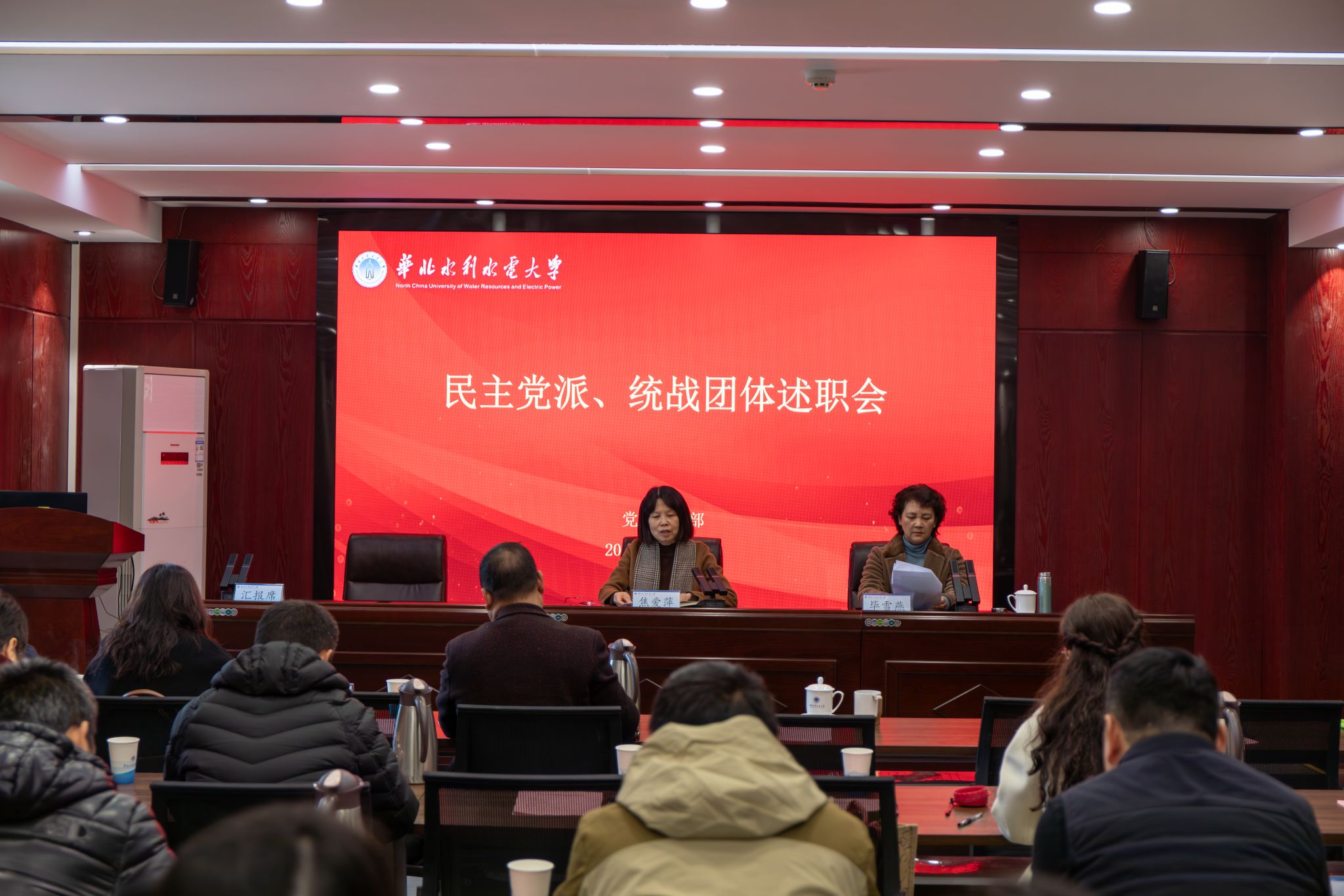 12月19日,我校在龙子湖校区综合实验楼第三会议室召开各民主党派、统战团体述职会。校党委副书记焦爱萍出席并讲话。校党委常委、统战部部长毕雪燕主持会议。