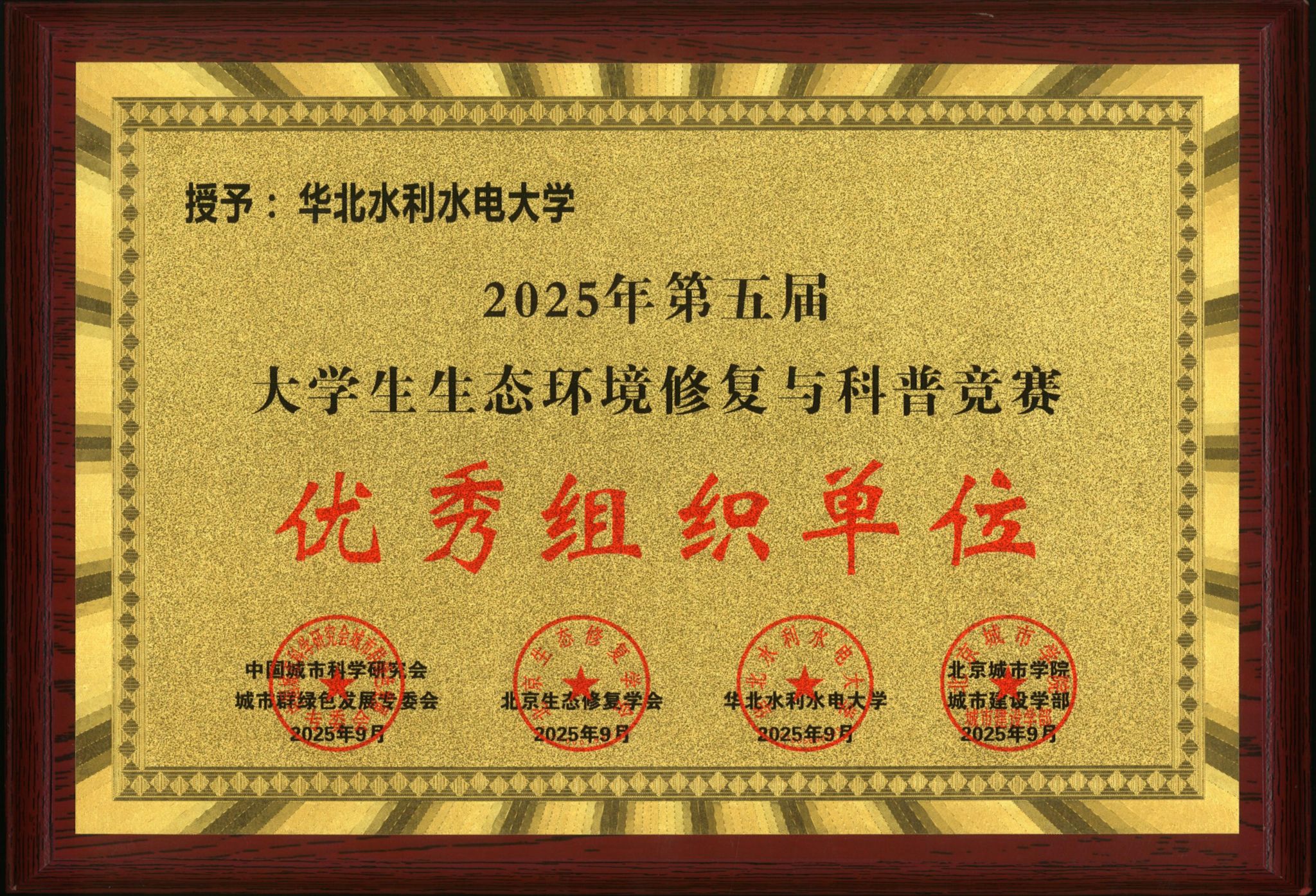 12月27日,北京生态修复学会第七届首都生态大讲堂暨第五届大学生生态环境修复与科普竞赛颁奖典礼活动在北京举行。会上,对第五届大学生生态环境修复与科普竞赛优秀组织单位及优秀指导教师进行表彰,我校在全国众多参赛单位中脱颖而出,荣获“优秀组织单位”。