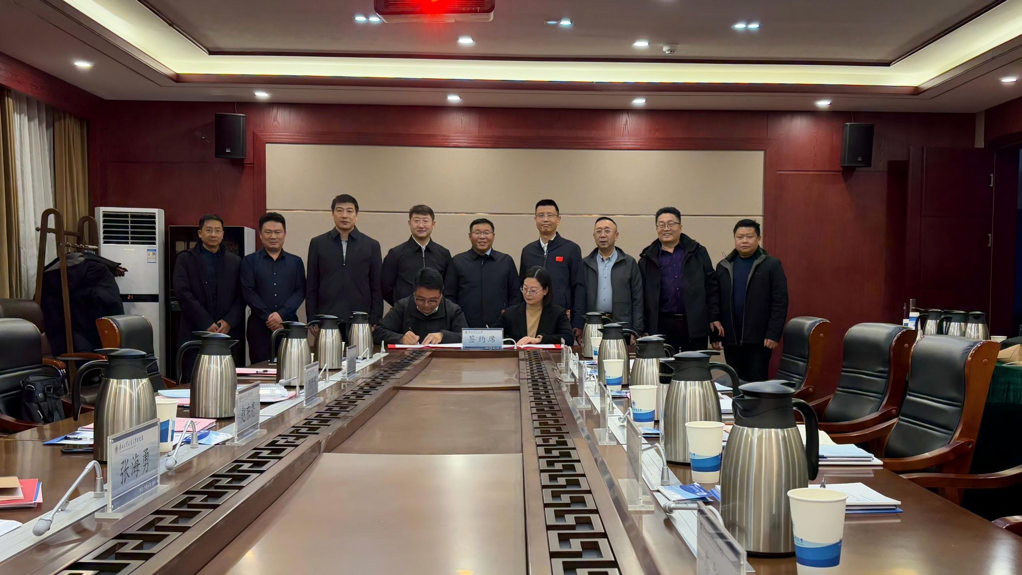 1月8日下午,中水北方勘测设计研究有限责任公司(以下简称“中水北方公司”)副总经理韩绪博一行来我校洽谈中水北方公司总包事业部与河南华北水电工程监理有限公司战略合作协议签约事宜。校长刘俊国和副校长张志增会见韩绪博一行,并见证合作协议签约仪式,副校长宋刚福出席会议,会议由科技服务中心党总支书记毋红军主持。