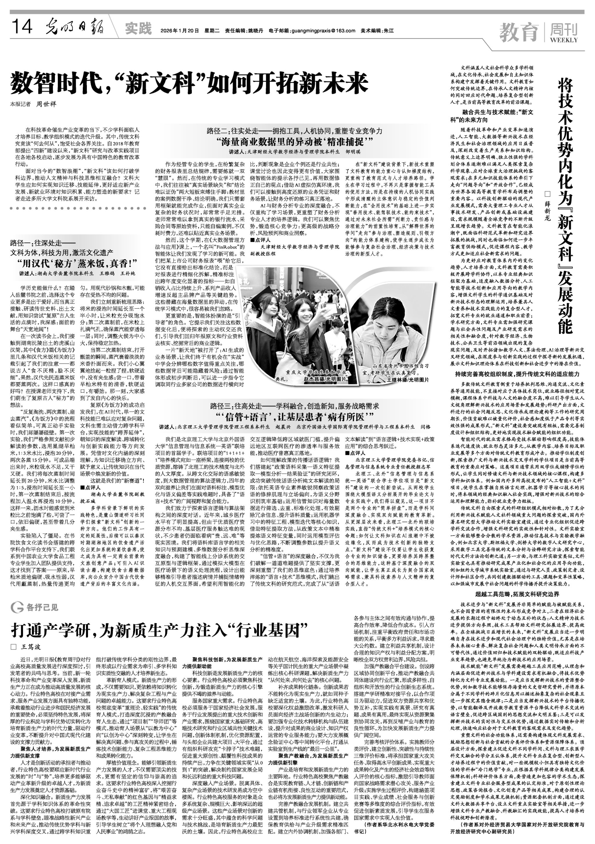 编者按:1月20日,校党委书记王笃波在《光明日报》发表署名文章《打通产学研,为新质生产力注入“行业基因”》。文章围绕行业特色高校在培育新质生产力中的使命与路径,从人才培养、科技创新、产教融合三个方面,系统阐述了如何将学科优势与行业需求深度融合,推动教育链、人才链、创新链与产业链协同发展,为新质生产力发展注入强劲动能。该文不仅彰显了我校服务国家战略、扎根行业办学的鲜明特色,也为新时代行业高校高质量发展提供了思路参考与实践指引。现转发如下,供学习参考。
