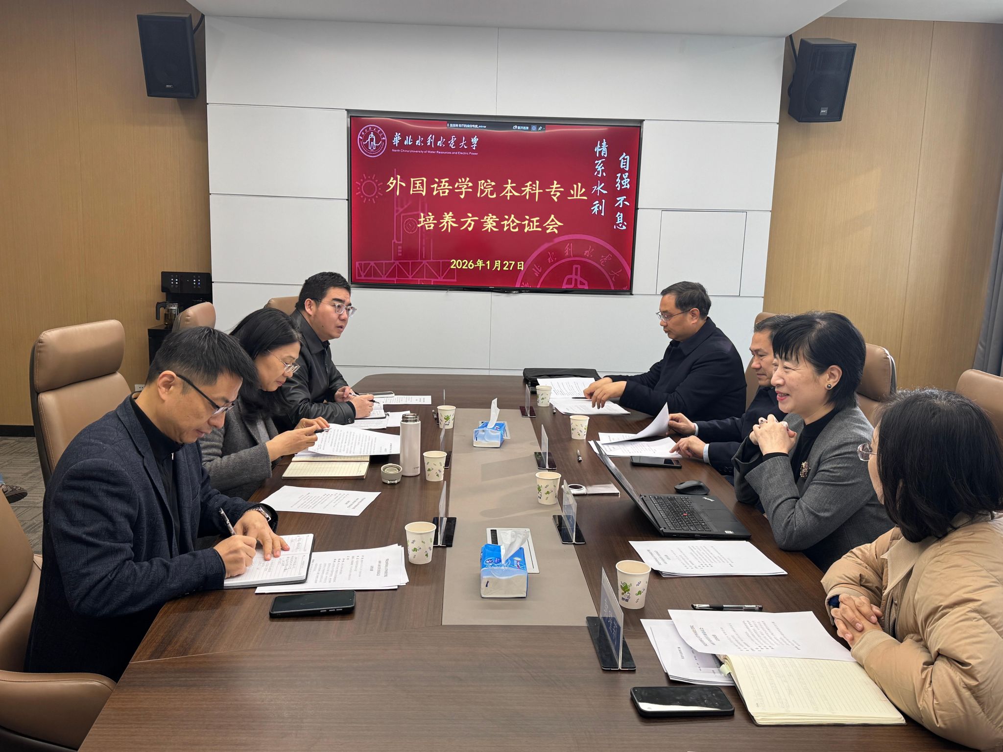 在专家论证环节,三位专家分别从不同维度对培养方案修订提出了指导意见。王卓强调,培养方案修订需系统融合OBE理念、特色导向、时代特色、预见性四大逻辑,进行整体设计与综合考量。钱建成指出,人才培养应紧密对接国家战略与行业趋势,充分发挥学校办学特色,深入探索外语学科与水利水电特色的融合路径,增强人才培养服务行业发展的针对性与实效性。任世芳结合国际中文教育发展前沿,为国际中文教育专业培养方案优化提出了建设性的指导意见。