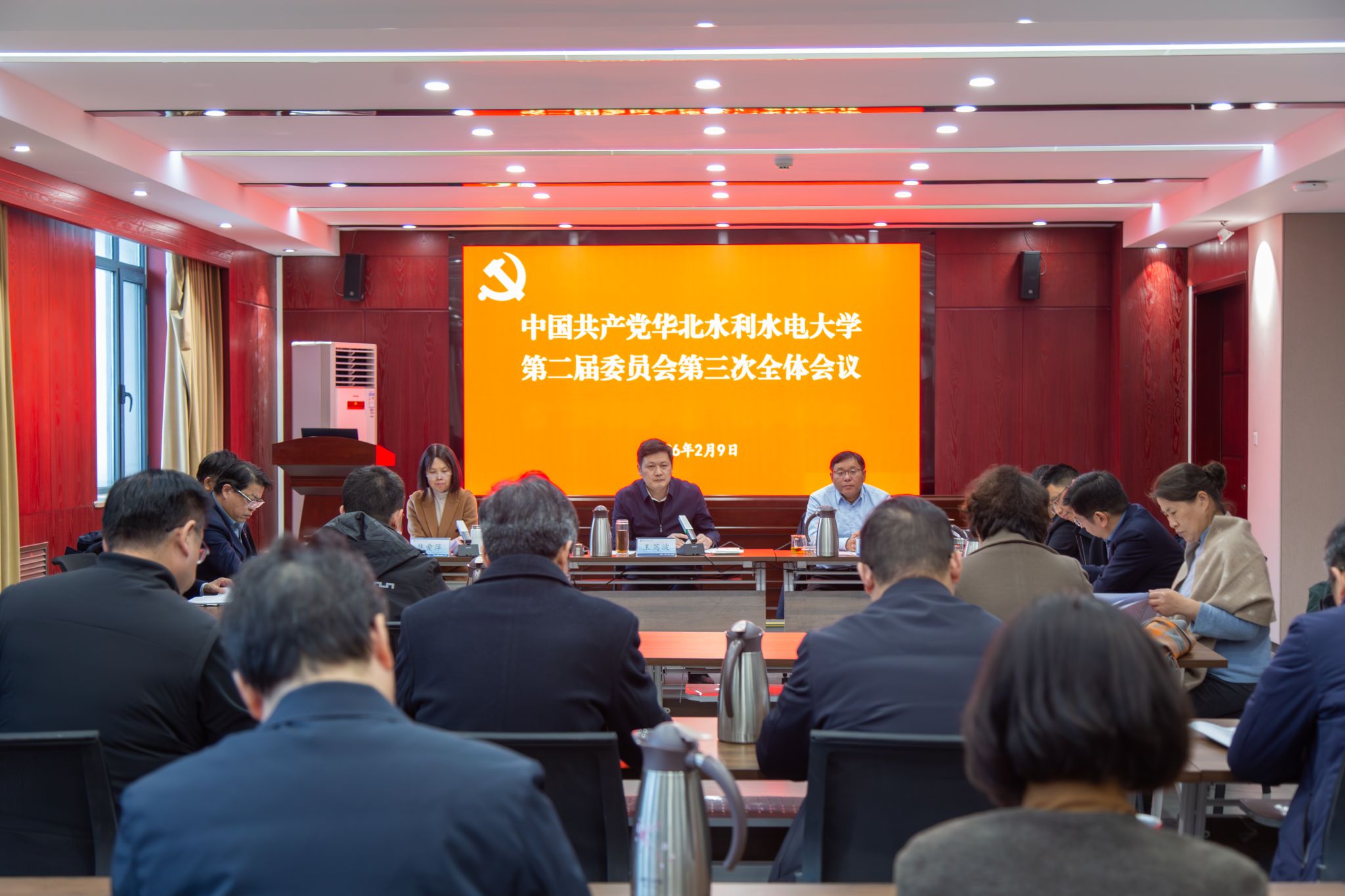 2026年2月9日,中国共产党华北水利水电大学第二届委员会第三次全体会议在龙子湖校区综合实验楼第三会议室召开,全体校党委委员参加会议。会议由校党委常委会主持。