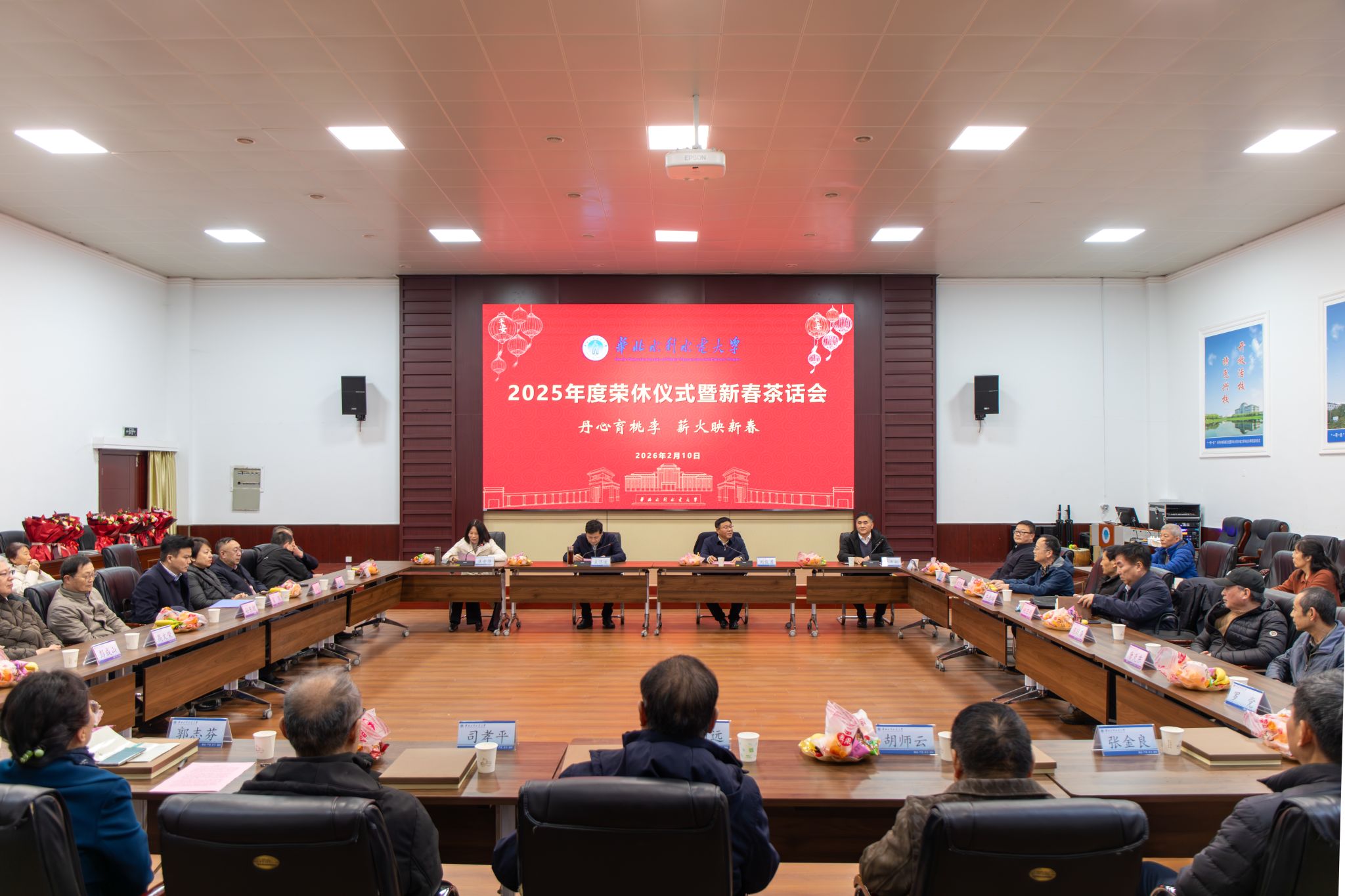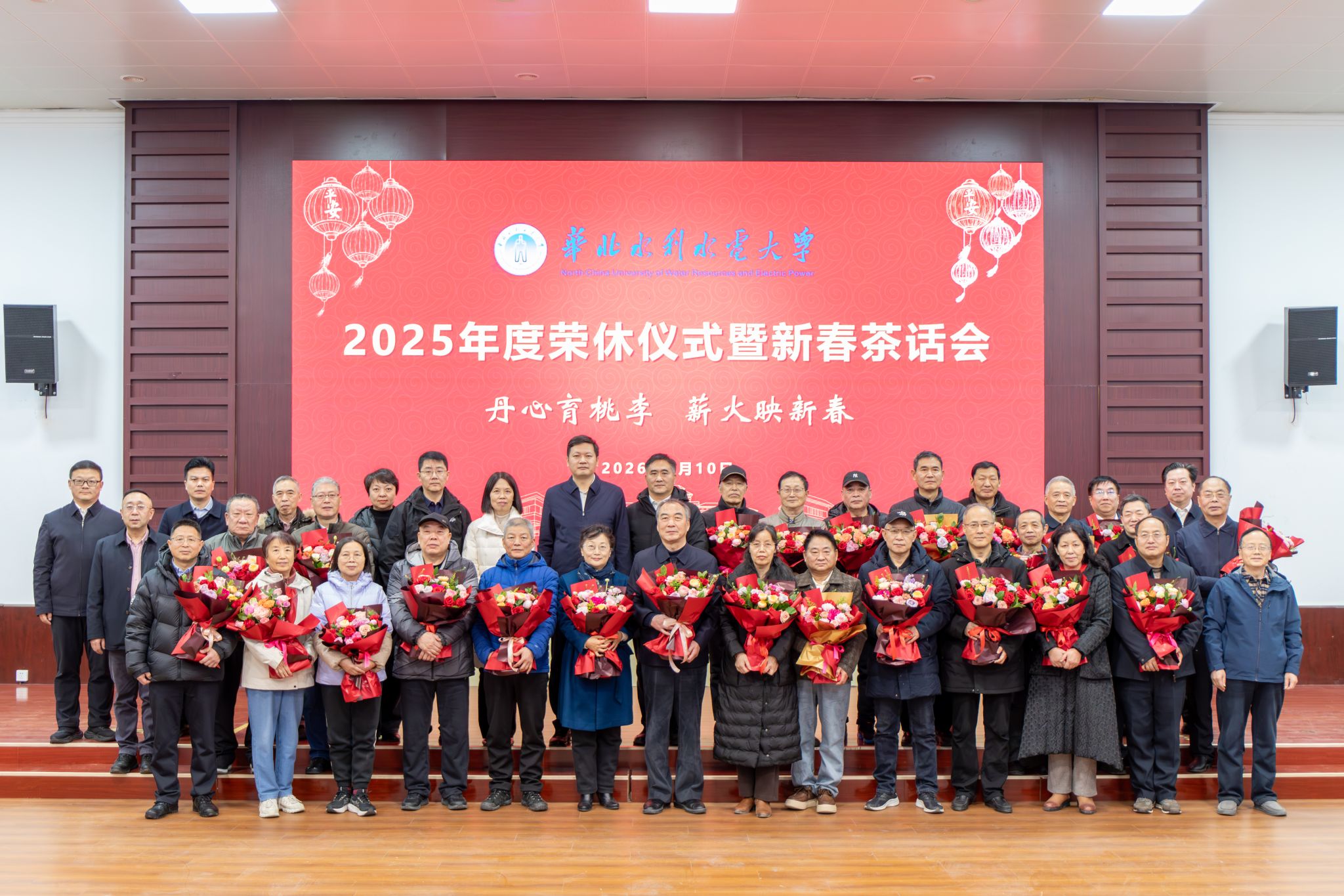 王笃波强调,2026年是学校“十五五”规划谋篇布局、锚定“双一流”创建和水利工程学科A类突破目标、全面深化“3121”综合改革的关键之年,还是建校75周年。学校将坚持以习近平新时代中国特色社会主义思想为指导,贯彻党的二十大和二十届历次全会精神,推进“四卓越两赋能一提升”行动,聚焦水利工程学科冲A核心目标,锐意改革创新。他指出,要将宏伟蓝图变为现实,需要全体华水人同心奋斗,更离不开老同志们的智慧引领与精神传承。为此,他向老同志们提出四点期望:一是坚守初心传薪火,当好华水精神的“传承者”,继续弘扬党的创新理论与华水办学精神;二是智献良策促发展,当好学校发展的“智囊团”,继续为学校“十五五”规划与高质量发展贡献智慧;三是心系华水聚合力,当好众志成城的“激励者”,多说正能量的话,多做促发展的事,努力营造好的氛围、环境、生态,激励学校年轻教师凝聚合力促发展。四是乐享银龄守安康,当好幸福人生的“践行者”,科学安排退休生活,并欢迎常回学校。学校党委将一如既往关心老同志,完善服务体系,让大家在政治上有荣誉感、组织上有归属感、生活上有幸福感。