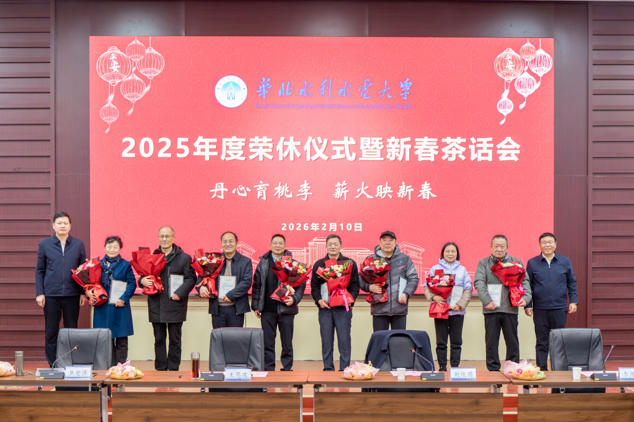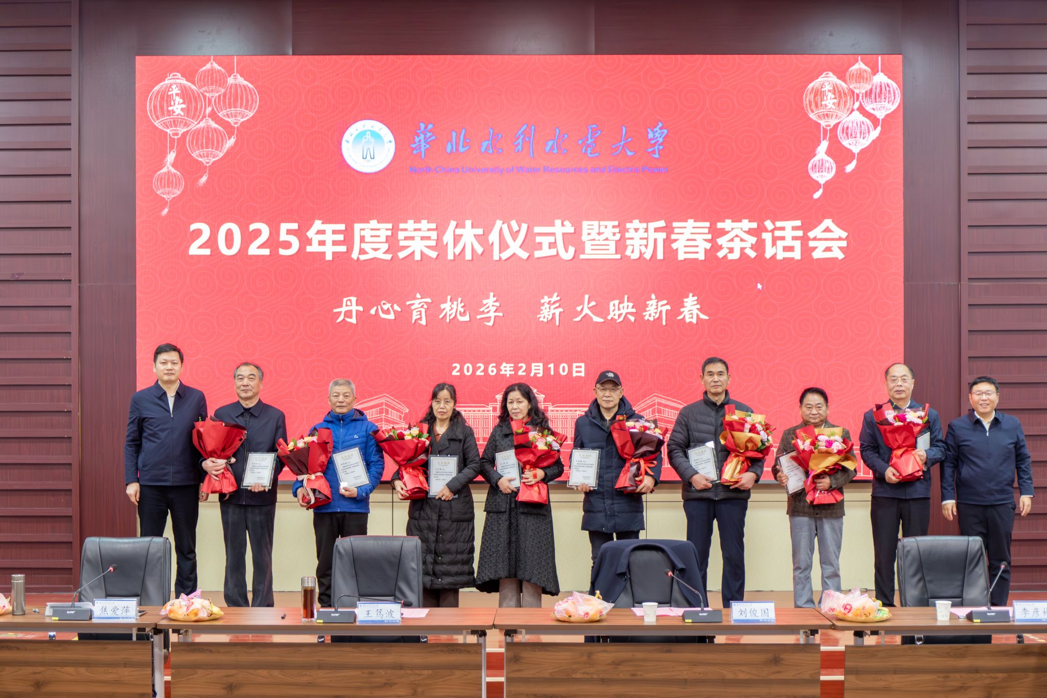 会上,李彦彬宣读了2025年度学校退休教职工名单。王笃波、刘俊国为2025年度退休职工颁发了荣休证书并送上鲜花。