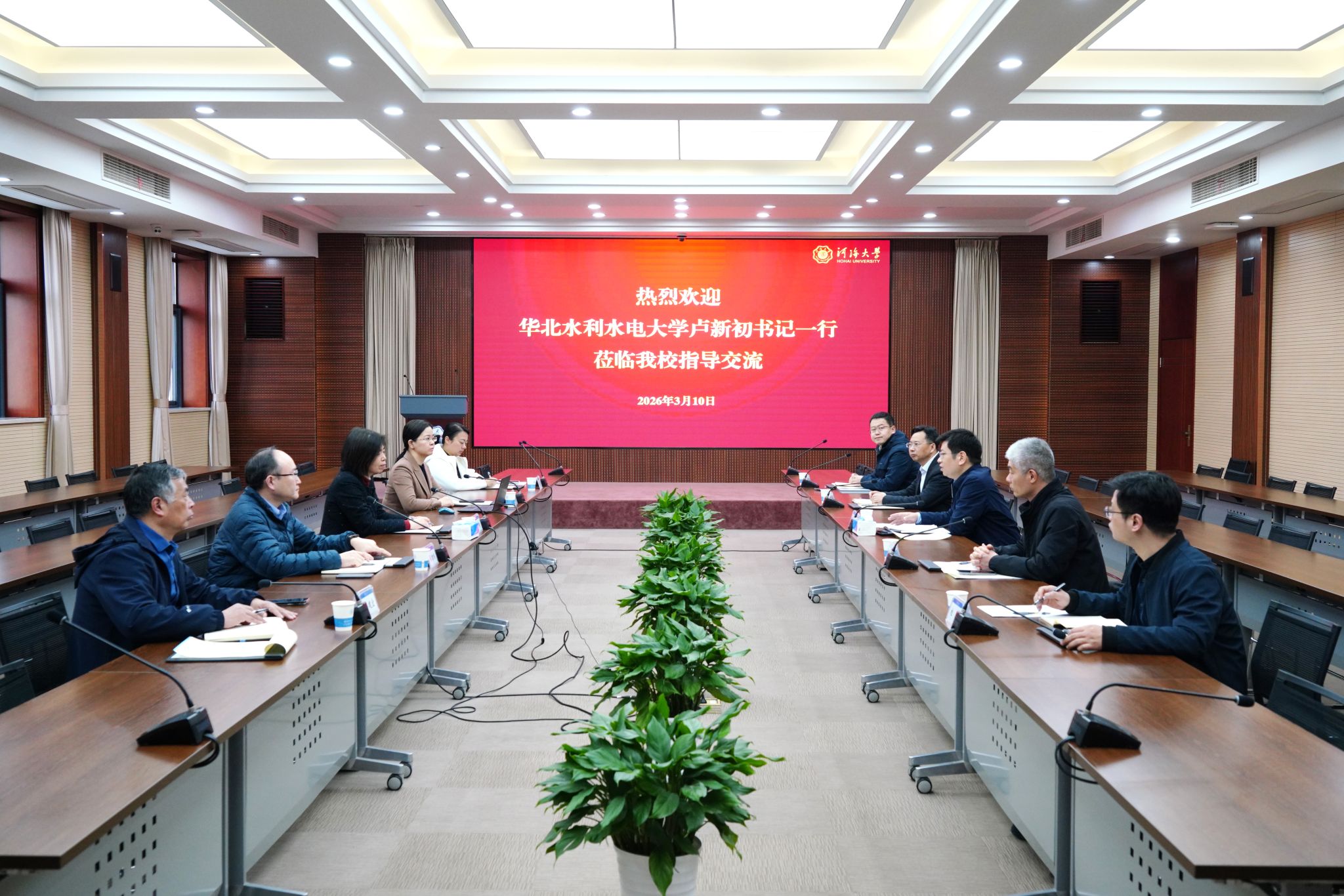 河海大学党委副书记、纪委书记孟新对卢新初一行的到来表示热烈欢迎,并介绍了河海大学近年来的发展情况。她指出,河海大学与华北水利水电大学因水结缘、同脉同根,共同肩负着服务国家水利事业发展的时代重任,希望双方进一步加强交流互鉴,在纪检监察工作更好服务保障学科建设、科研创新、人才培养等方面共同探索新路径、形成新合力。