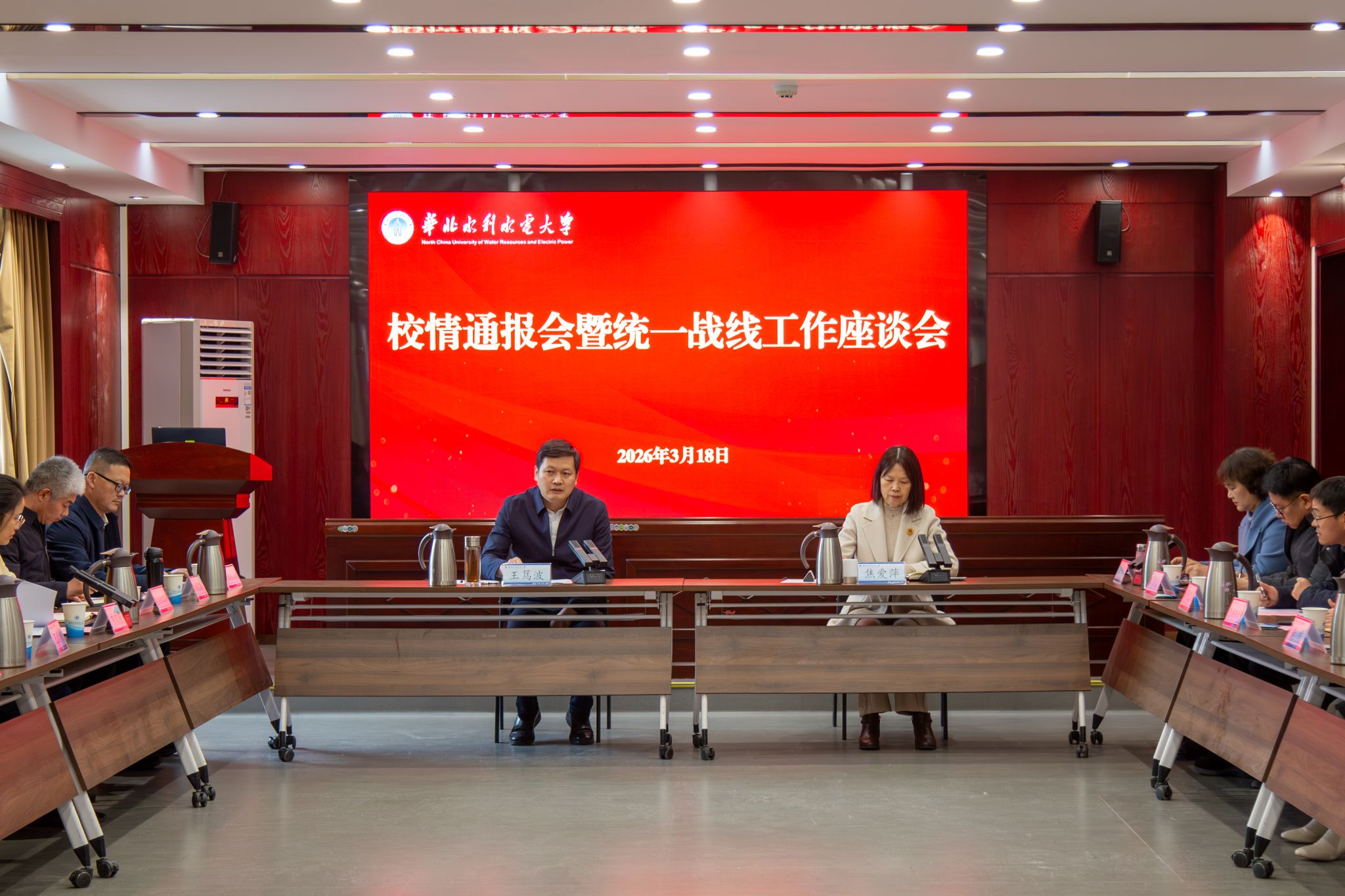 3月18日下午,我校2025年度校情通报会暨统一战线工作座谈会在龙子湖校区综合实验楼第三会议室召开。校党委书记王笃波主持会议并讲话,校党委副书记焦爱萍出席会议。各民主党派、无党派人士、统战团体负责人及成员代表和校统一战线工作领导小组部分成员单位负责同志参加会议。