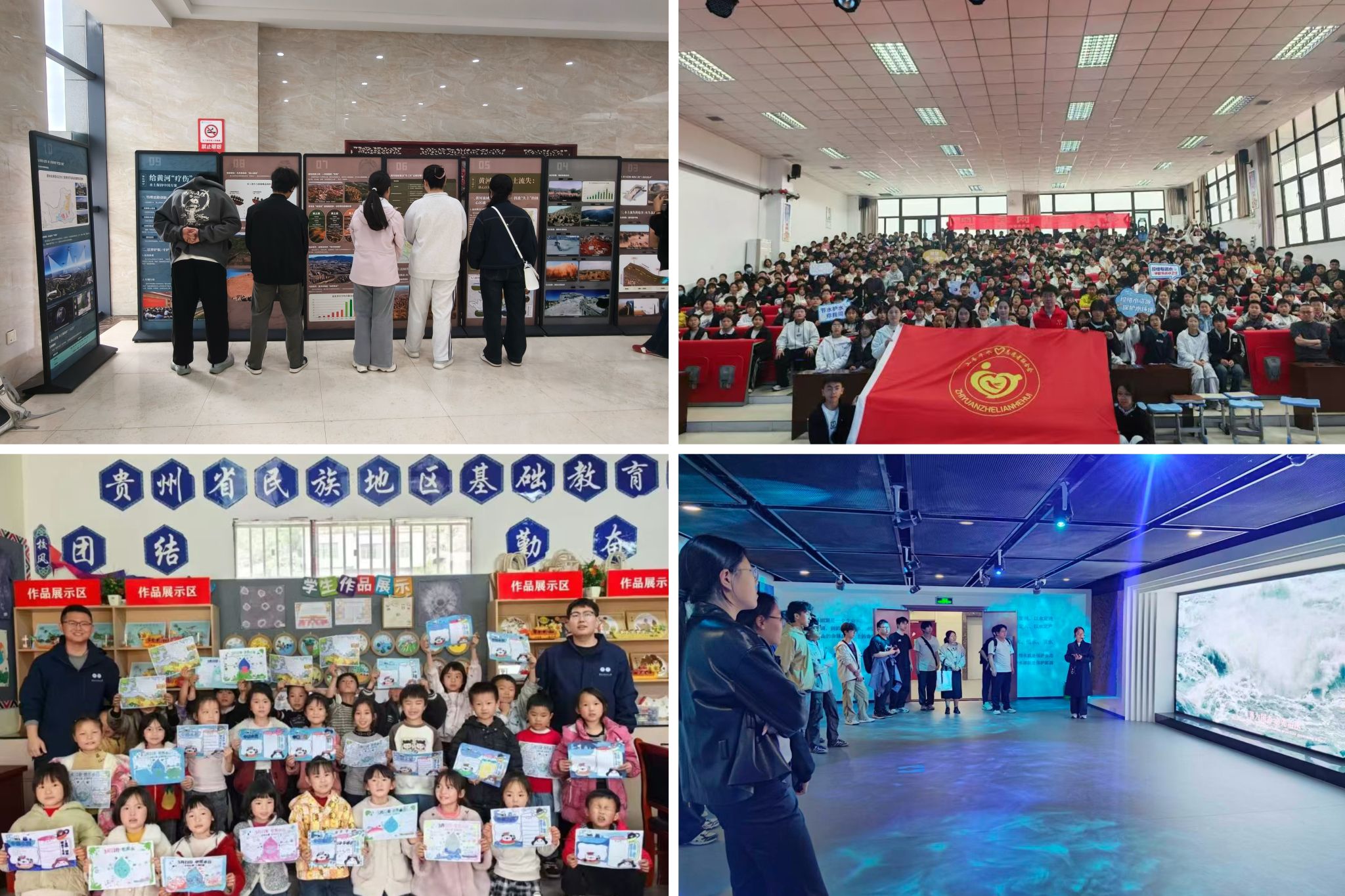 新时代治水社会科学研究院联合黄河博物馆、校图书馆举办“母亲河的呼唤——黄河水土流失与守护之路”水土保持科普展,系统展示黄河生态治理成果,吸引全校师生参观学习。校团委组织“水利+”科普志愿服务队、研支团分赴校内各学院、贵州支教学校及周边中小学开展水文化宣讲。慧泉书院联合罗山团县委开展“红领巾进校园”活动,让治水智慧走进青少年群体。水文化馆面向师生与社会公众开放,让参观者体悟中华五千多年水利发展史与学校“情系水利、自强不息”的办学精神。