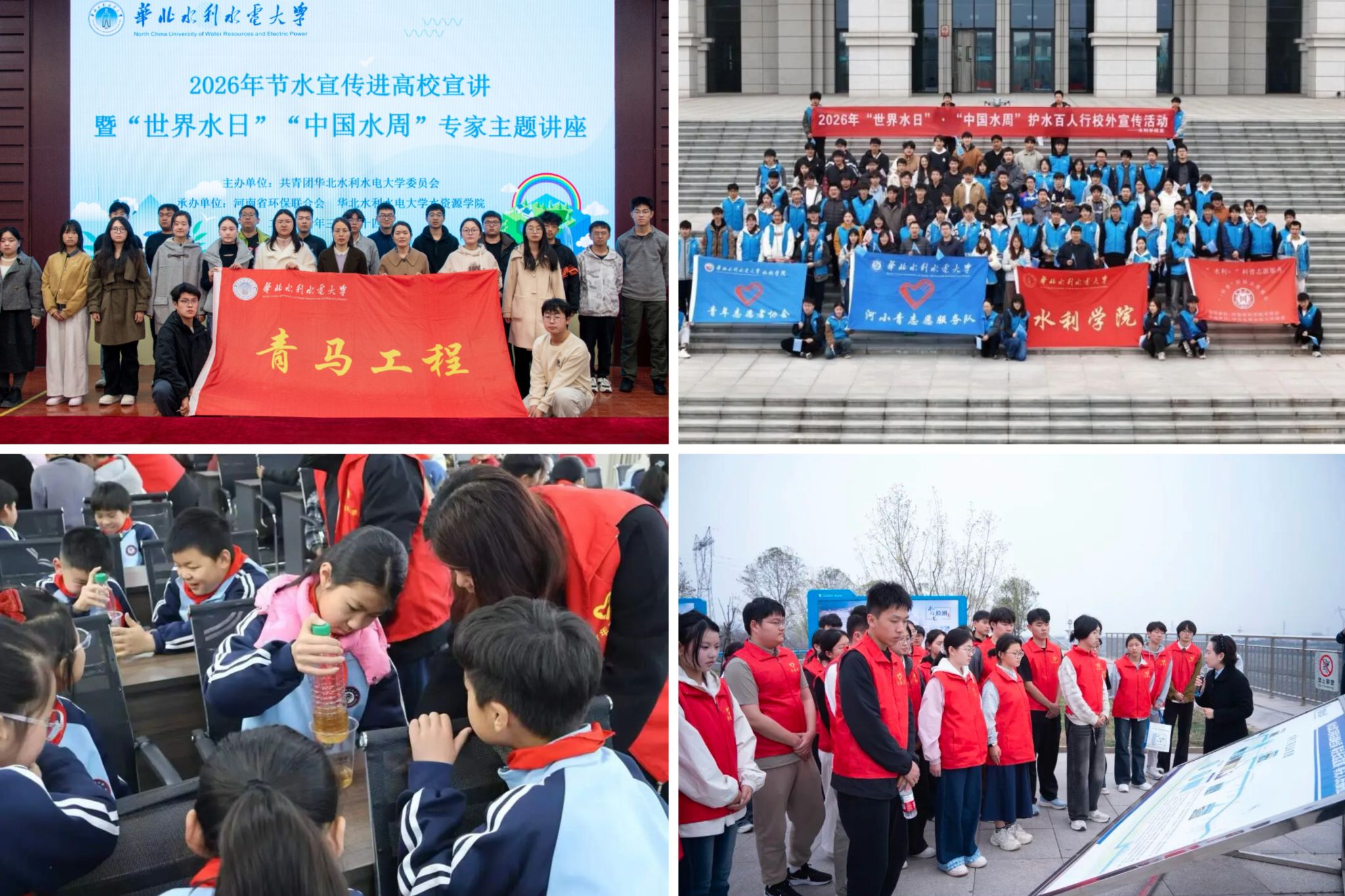 2026年“水润中国”水文化节系列活动吸引了校内各单位和中国南水北调集团中线工程有限公司、郑州市水资源综合保障中心、郑东新区管理委员会、河南省环保联合会、共青团罗山县委和郑东新区春华学校教育集团华水校区等单位的大力支持、广泛参与和交流合作。活动将国家水网建设、黄河流域生态保护等重大战略融入校园实践,实现了课堂教学与社会实践、校园普及与社会传播、文化传承与创新实践的有机结合。不仅让师生深化了对治水兴水的理解,更以多样形式带动社会各界参与水资源保护,为绘就国家水网世纪画卷、推动水利事业高质量发展贡献了华水智慧与青春力量。