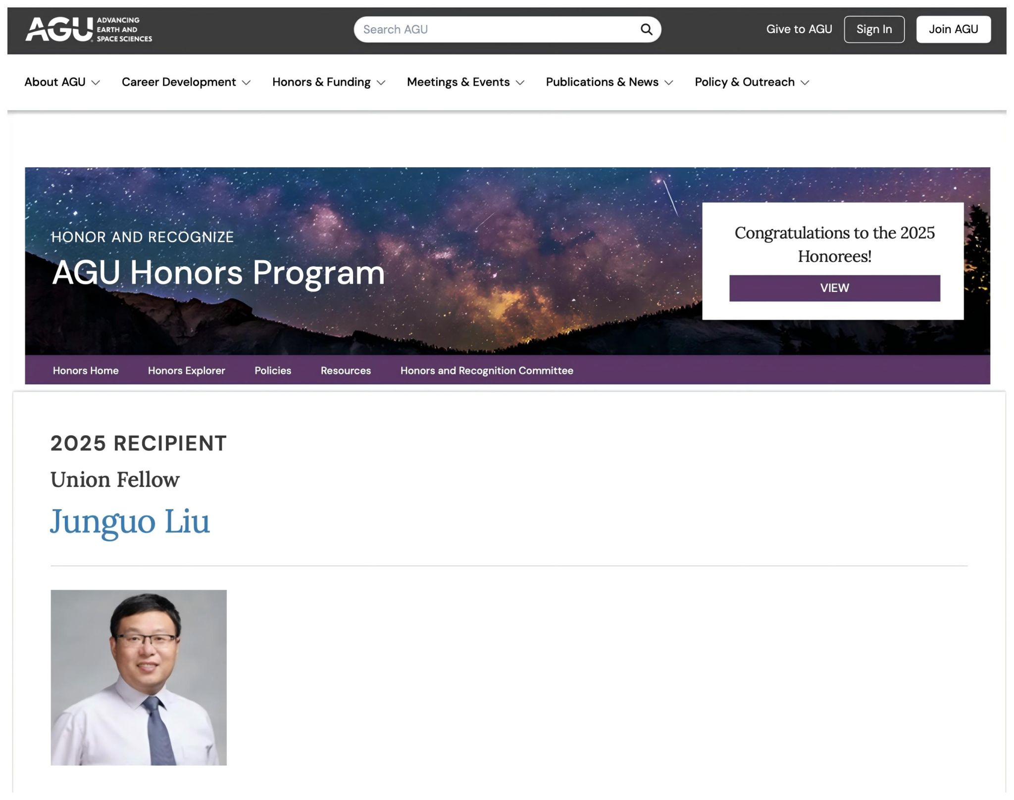 刘俊国教授当选2025年度美国地球物理联合会(AGU)会士